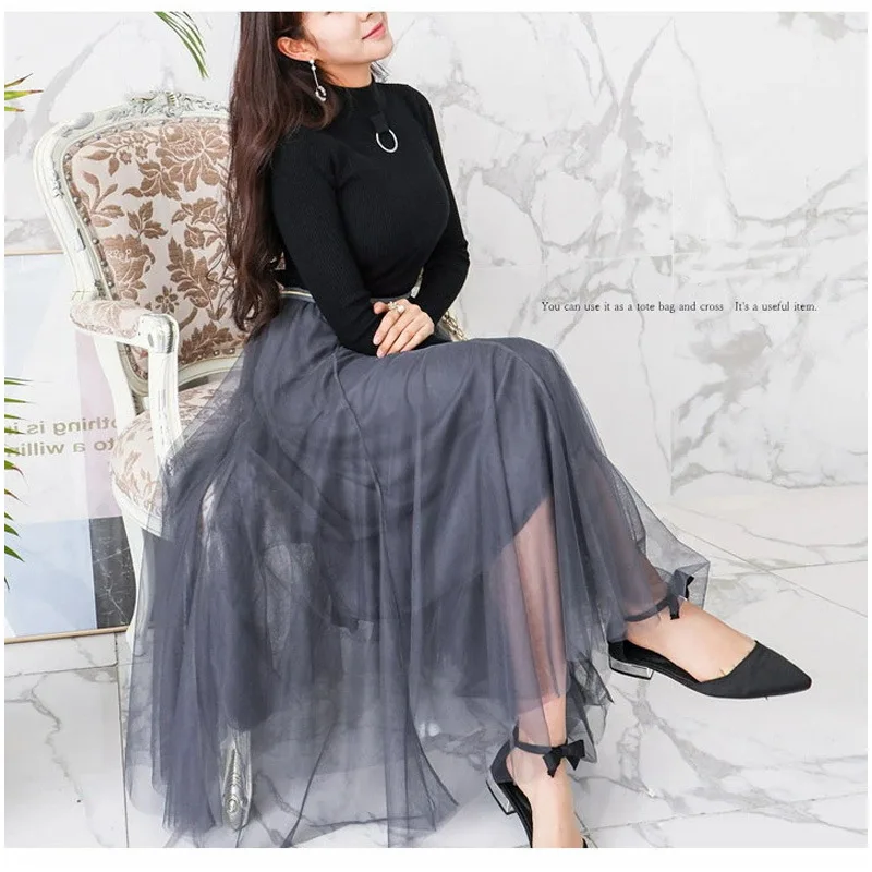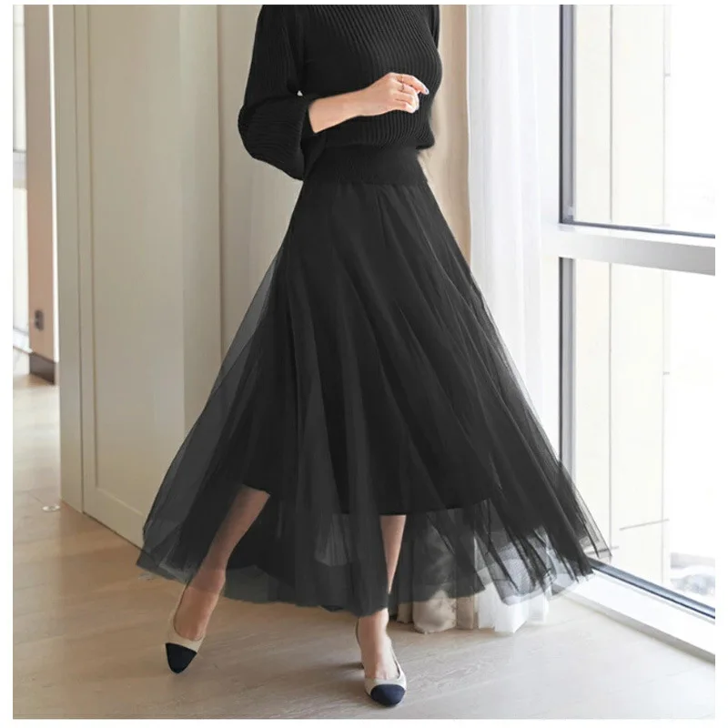 Юбка Fairycore с разрезом, лето 2021, однотонная эластичная Милая Корейская сетчатая Тюлевая юбка средней длины с высокой талией, костюм для вечернего платья