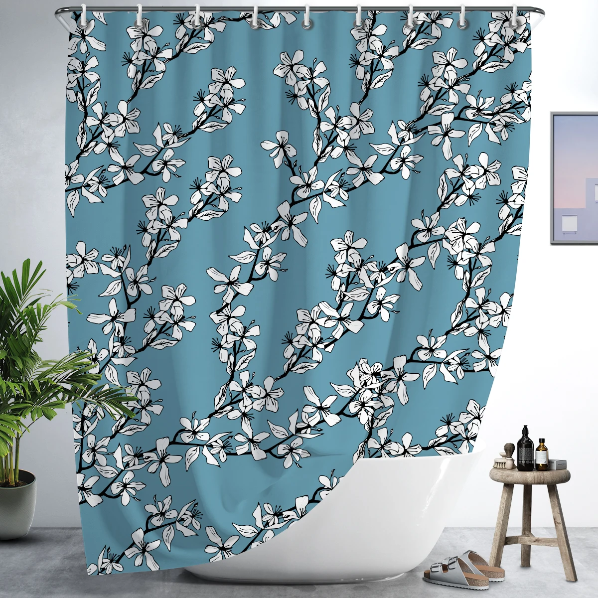 Занавеска для душа, с цветочным принтом и листьями, для ванной