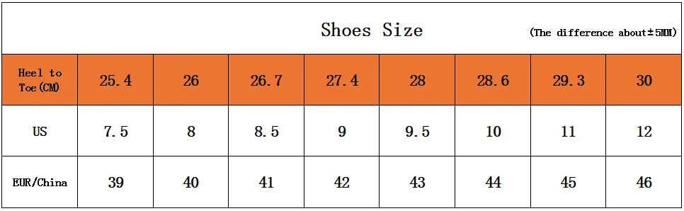 1. Измерения являются максимальным размером, пожалуйста, допускайте погрешность около ± 5 мм. Сравните таблицу размеров с длиной Вашей стопы перед заказом.