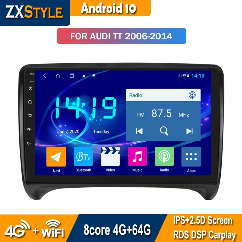 Автомобильный мультимедийный плеер с GPS-навигацией, 4 Гб + 64 ГБ, Android 10, для Audi TT MK2 8J 2006-2014 Carplay DSP WIFI Bluetooth RDS DVD
