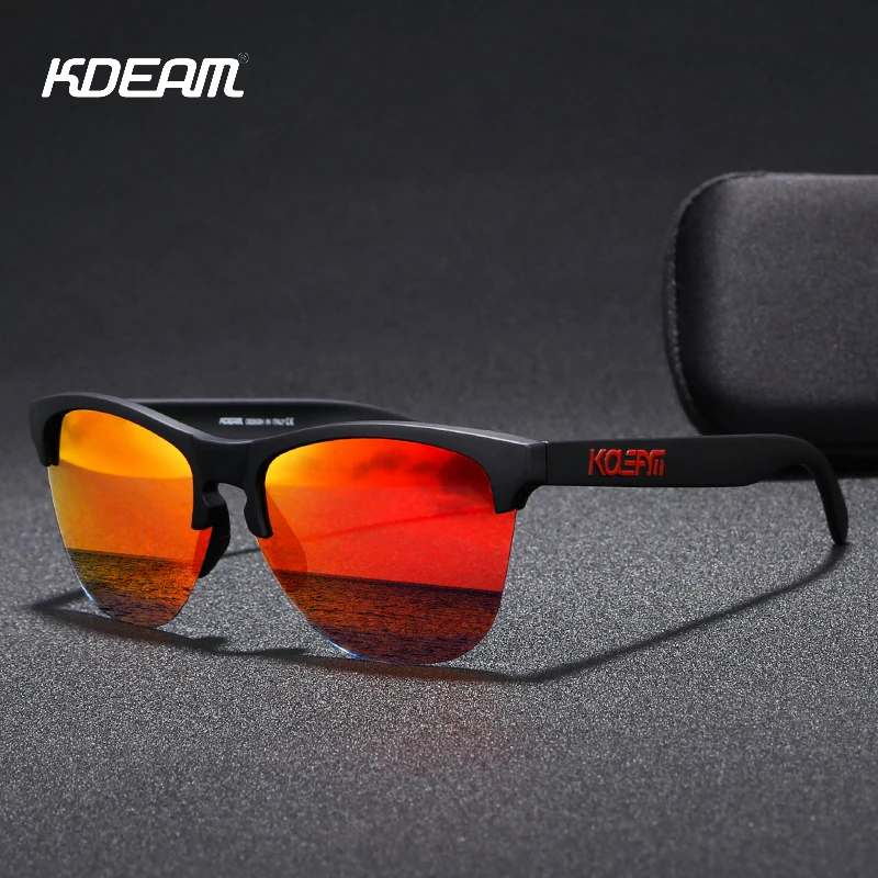 Мужские солнцезащитные очки KDEAM, поляризационные, в полуоправе, TR90, спортивные, зеркальные, с бесплатной коробкой