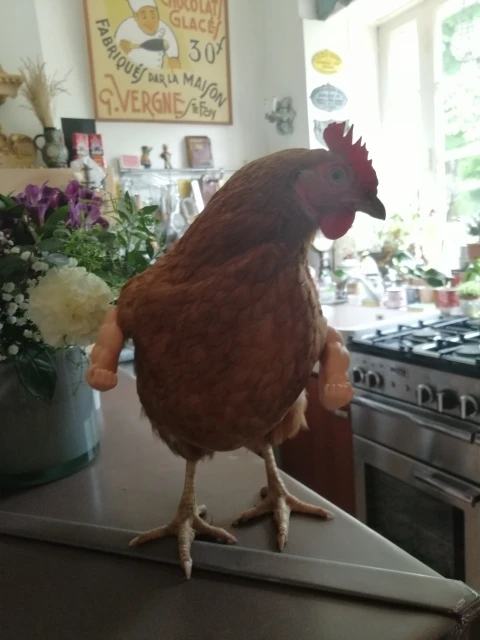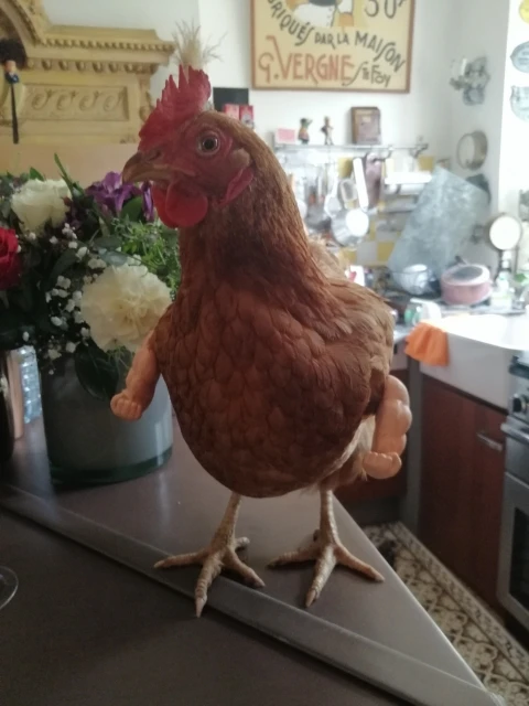 Получено целым и невредимым. Вещица милая, для посмеяться и развлечься самое то) но наши курицы пытались от нее активно избавится)посмеялись и быстро сняли)