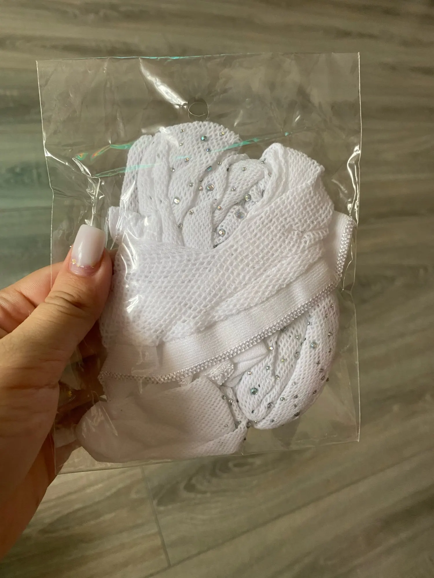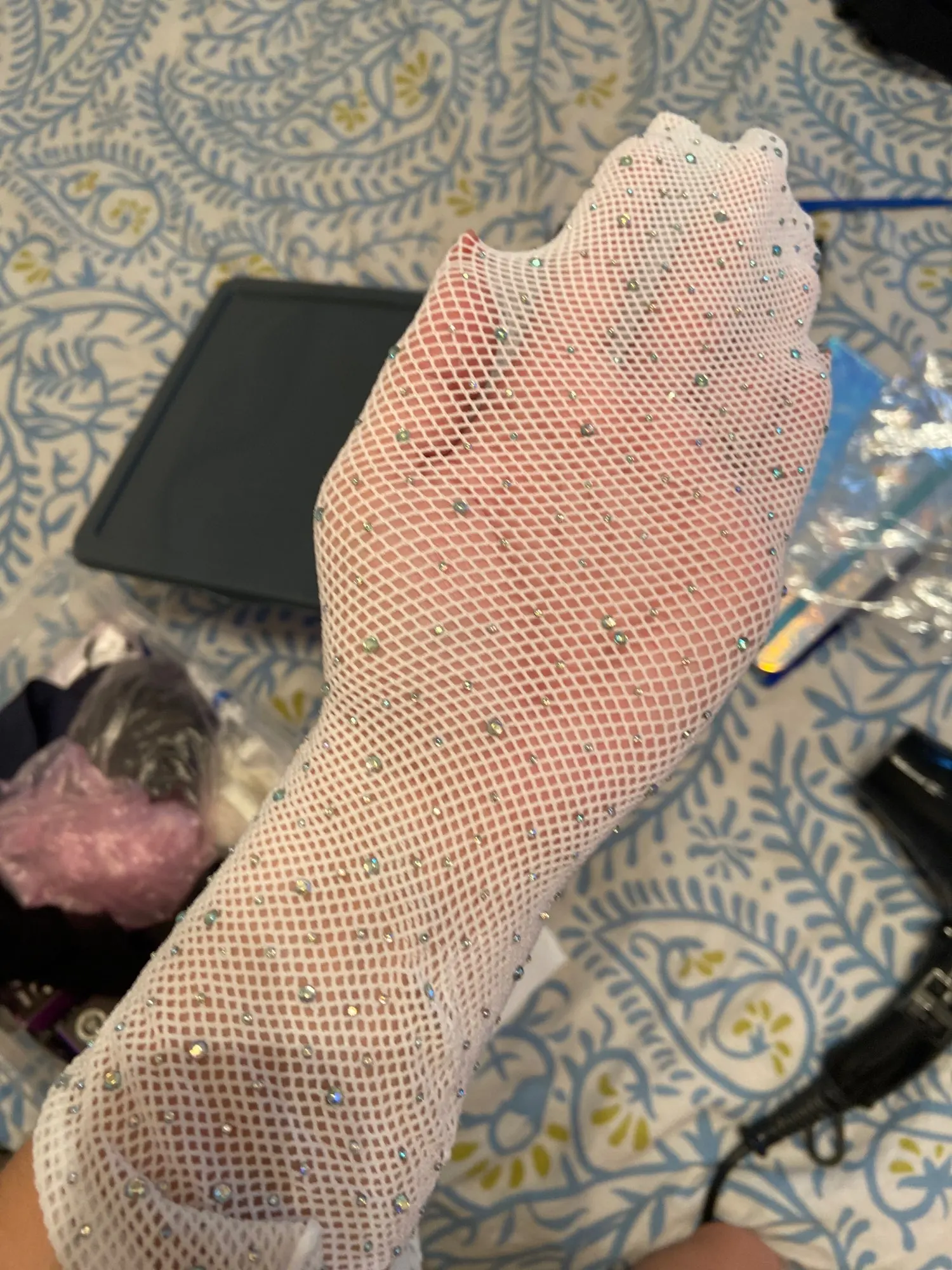 Ну, что ж) Халявушка на троечку с минусом. Увы, ждала другое. Размер на девочку метр пятьдесят с табуретом. На мой 180 и ноги как у Джулии Робертс вообще не натянутся. Вот моя рука рядом лежит) И стразы отваливаются. Это я их даже не надевала, представляю, какой будет позор) Да ещё и белого цвета, хотя изначально выставляли в чёрном. Это было бы куда ни шло! Короче, бесплатно бывает только фигулька какая-нибудь)