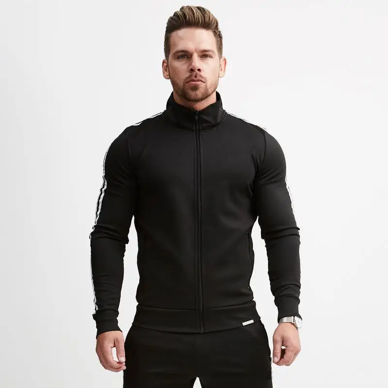 2021 однотонный зимний мужской костюм в полоску с воротником, спортивный костюм для отдыха, спортивная куртка для отдыха, костюмы для бега на молнии с настраиваемым рисунком