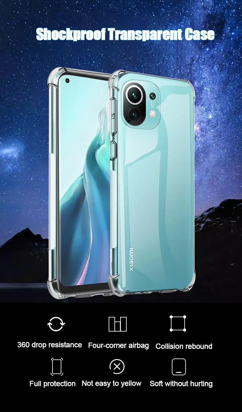 Прозрачный силиконовый чехол из ТПУ для телефона Xiaomi Mi 11 Lite Pro Mi10T Lite POCO F3 M3 X3, противоударный чехол для Redmi Note 10 Pro Max, чехол