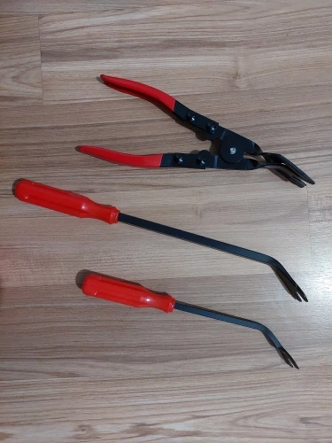 Особенности:1. Эти инструменты позволяют быстро и легко снять дверную панель автомобиля и зажимы для обивки, не нанося им повреждения.2. Конструкция челюсти позволяет снять зажим просто сдавливая ручки.3. Широкий нос предназначен для предотвращения поломки или разрыва панелей при снятии фасок.4. Эти плоскогубцы легко получить доступ в замкнутые зоны и сделать вас сделать работу с легкостью.5. Дизайн с удобными ручками, удобно работать с небольшим усилием.6. Конструкция из кованой стали и вал термообработки делают эти плоскогубцы очень прочными в использовании.