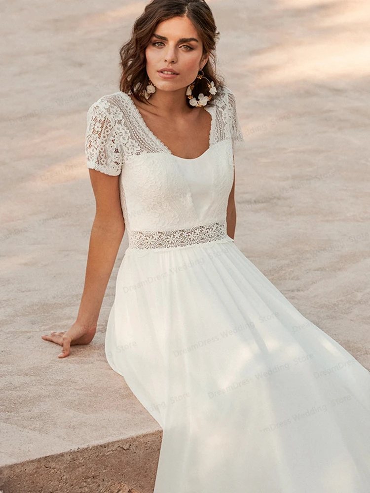 Женское шифоновое платье в стиле бохо, белое свадебное платье принцессы с V-образным вырезом, простое пляжное платье невесты длиной в Пол по индивидуальному заказу, 2021
