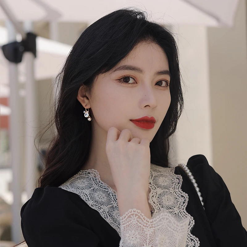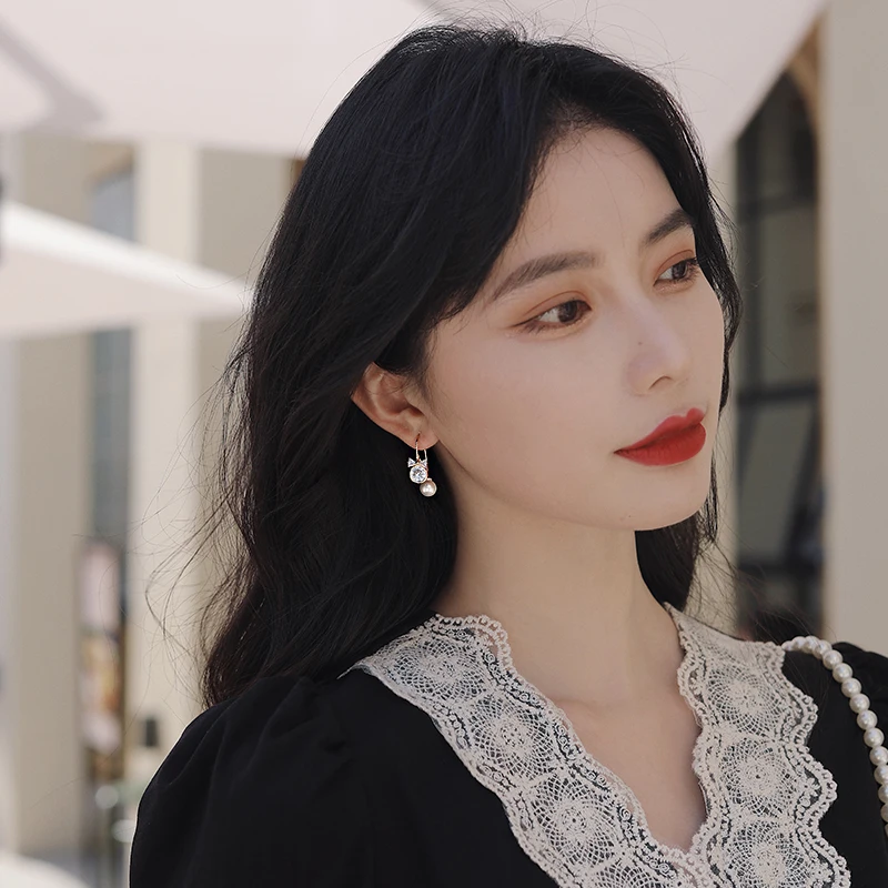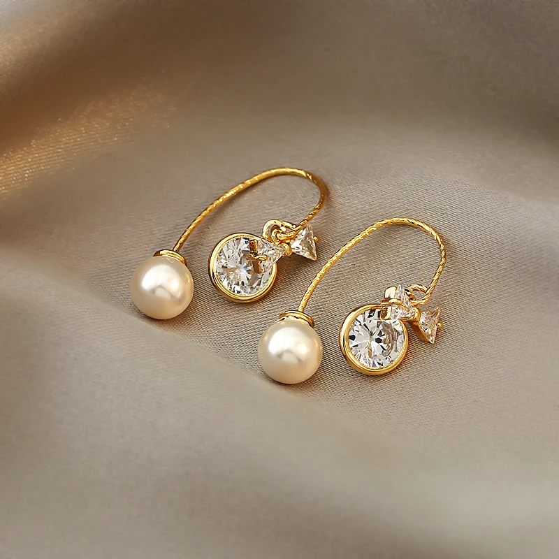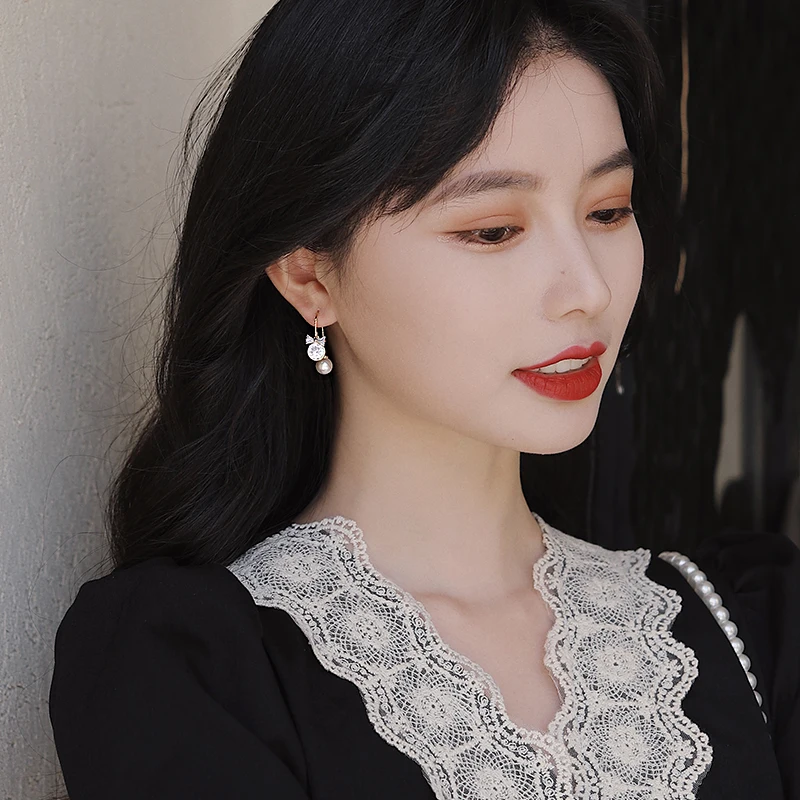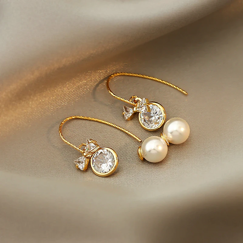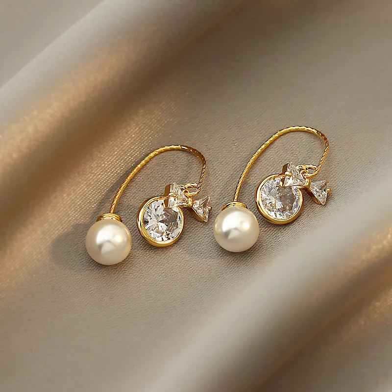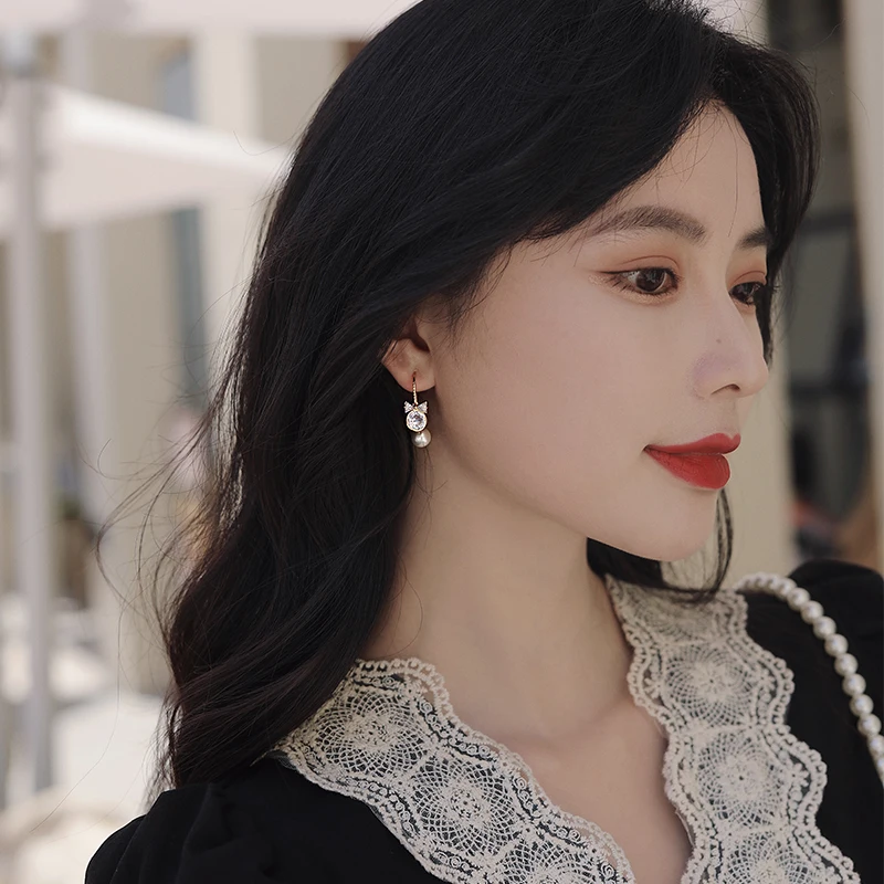Серьги-подвески женские YAOLOGE, винтажные, с жемчугом и хрустальным бантом, 2021