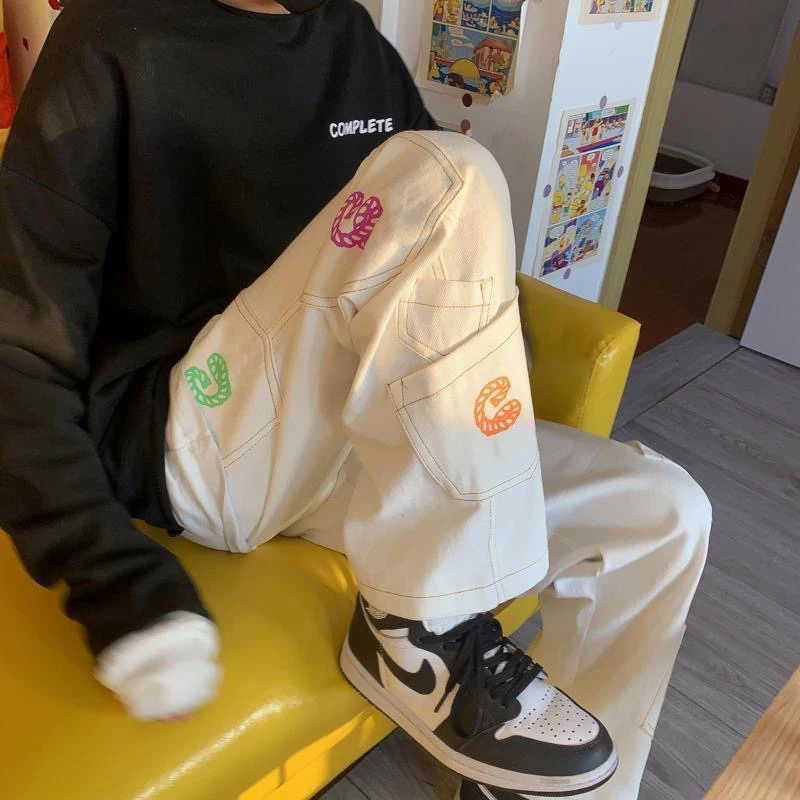 Прямые брюки-карго HOUZHOU в стиле ретро, с карманами, в стиле хип-хоп, для мужчин и женщин, уличные джинсовые брюки в стиле Харадзюку, винтажные, джинсы оверсайз