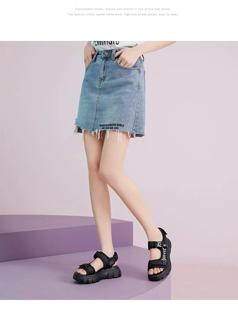CAMELлетние женские сандалии на плоской подошве; Модель 2021 года; Модная пляжная трендовая спортивная обувь; Женские сандалии на массивной платформе; Черная женская обувь