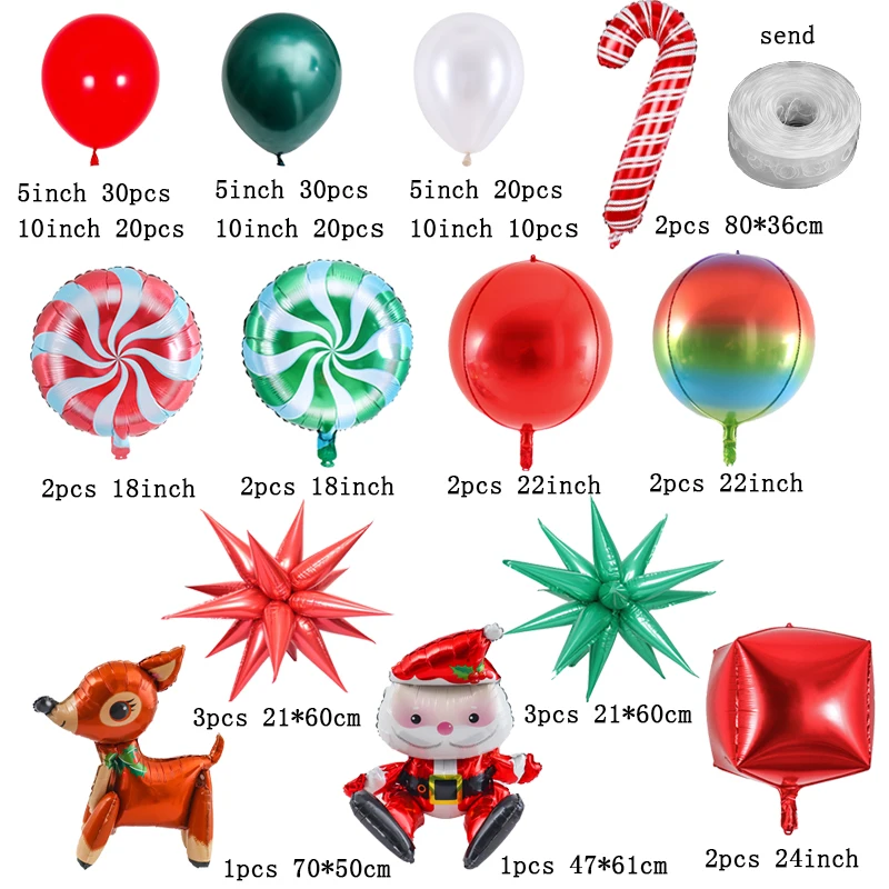Воздушный шар с надписью "Merry Christmas", новый год 2022, цепочка для воздушного шара, гелиевый круглый шар из алюминиевой фольги, красный, зеленый, конфеты, воздушный шар с Сантой