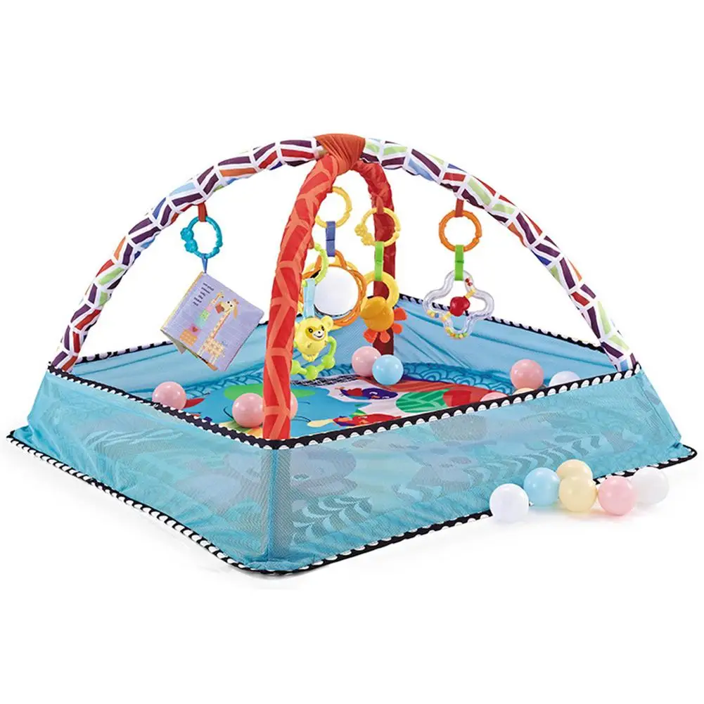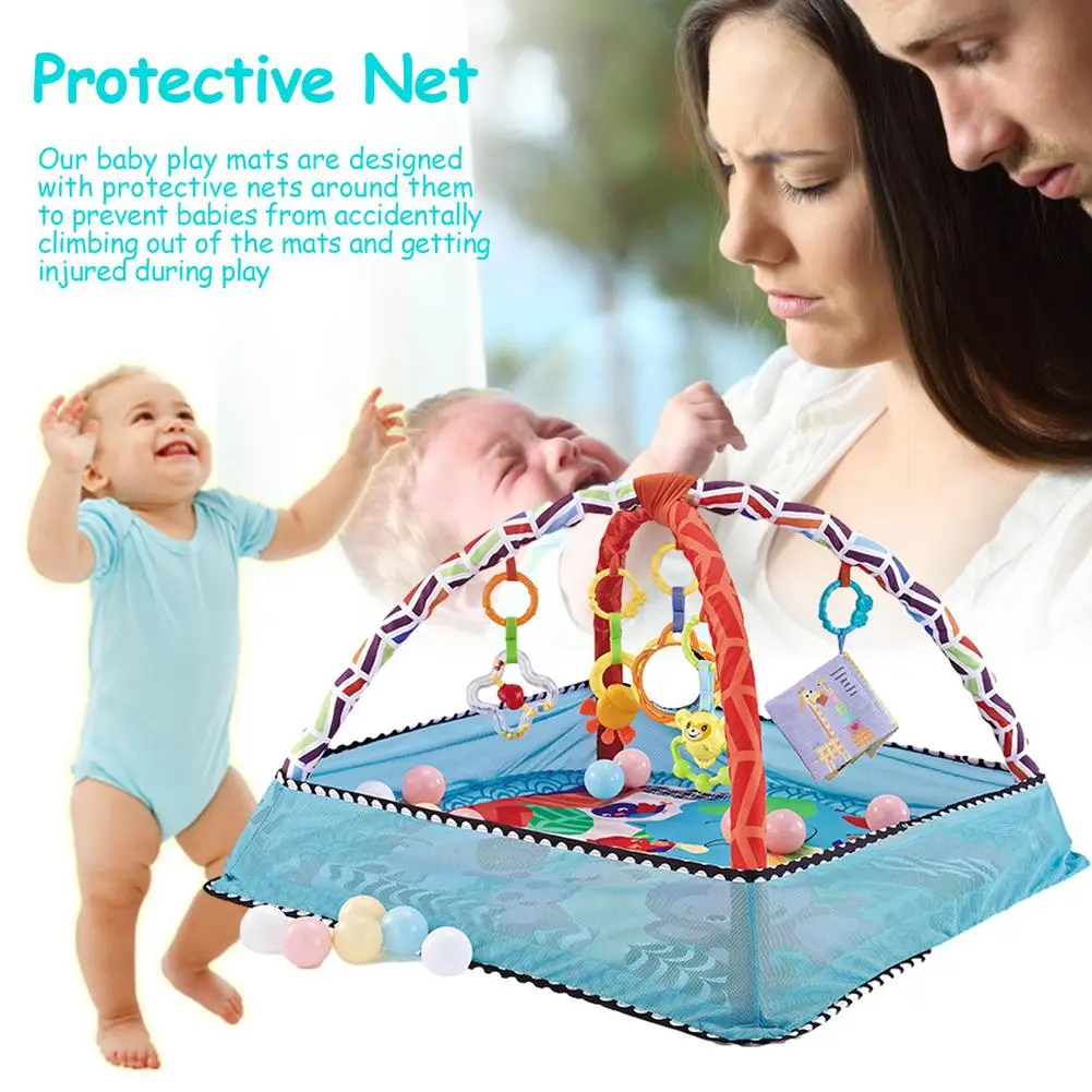 Точки пули:1. Защитная сетка: наши детские игровые коврики разработаны с защитными сетками вокруг них, чтобы предотвратить случайное выскакивание младенцев из ковриков и получение травм во время игры, давая им дополнительный слой защиты.2. Развлекательные и образовательные: этот детский игровой коврик оснащен 5 милыми съемными подвесными игрушками и 18 шариками океана. Игрушка будет сопровождать ребенка, чтобы провести хорошее время. Тренируйте свои грубые движения, чтобы ваш ребенок развивался во время игры. Для отдыха и образования.3, 3-6-12 месяцев, полное общение по росту: в критический период роста и развития вашего ребенка от 3-6-12 месяцев, пусть ваш ребенок использует фитнес-рамку, чтобы поднять голову, перевернуть, нажать и стоять налево. Создавайте различные Веселые впечатления для ребенка, пусть ребенок влюбится в спорт, здоровее.4. Большой размер: около 80*80*50 см, большой детский коврик для фитнеса, дающий детям больше места для упражнений, захвата, удержания, ногами и шагами, развитие распознавания цветов и сенсорного развития ребенка.5. Приятный для кожи и нетоксичный: этот детский коврик для фитнеса подходит для мальчиков и девочек в возрасте от 3 до 6-12 месяцев. Изготовлен из высококачественных приятных для кожи материалов средней толщины, деликатного и гладкого прикосновения, безопасного и удобного. Машинная стирка и легко моется.Особенности:1. Защита: наши детские игровые коврики разработаны с защитными сетками вокруг них, чтобы предотвратить случайное выскакивание младенцев из ковриков и получение травм во время игры, давая им дополнительный слой защиты.2. Фитнес-рамка может тренировать ребенка хватать, сжимать, ногами и шагами, а также развивать распознавание цвета и сенсорное развитие ребенка.Спецификация:Материал: АБС + тканьРазмер: около 80*80*50 см/31,5*31,5*19,68 дюймовВес: около 950 гУпаковочный лист:Детский спортивный зал * 1