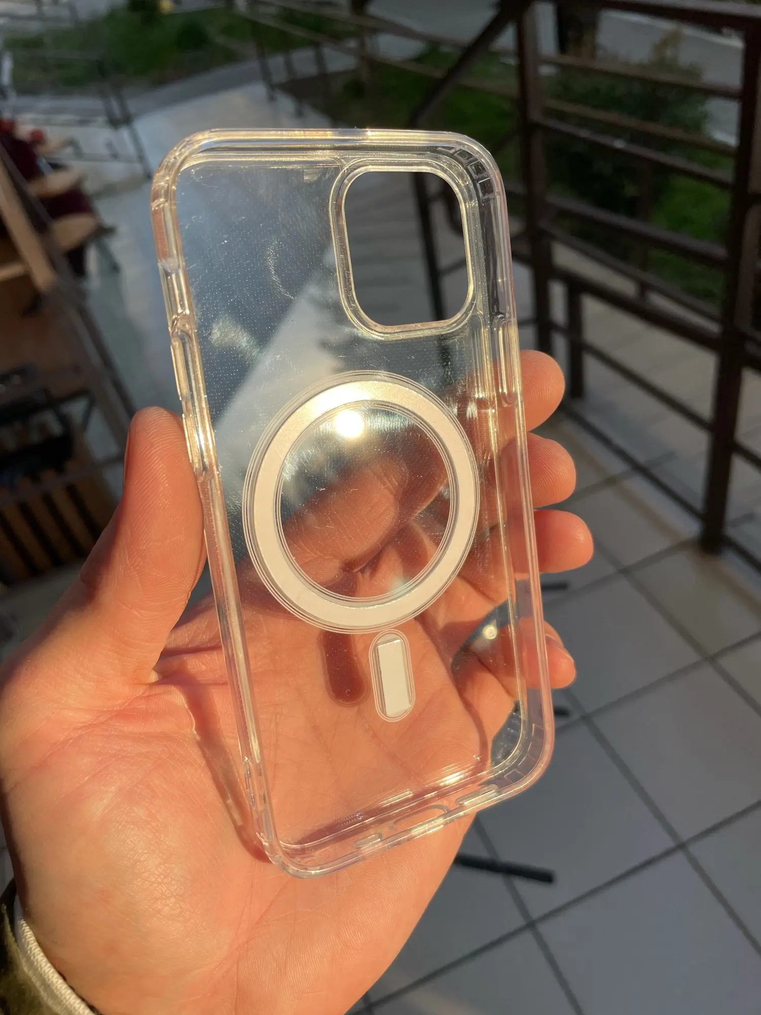 Прибыл в идеальном состоянии L, не царапается бампер, очень хороший продукт, в моем случае iPhone 12 идеально подходит.