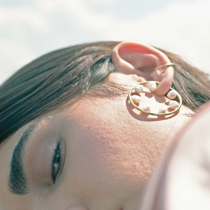 Серьги-кольца женские из нержавеющей стали, с натуральным пресновод...