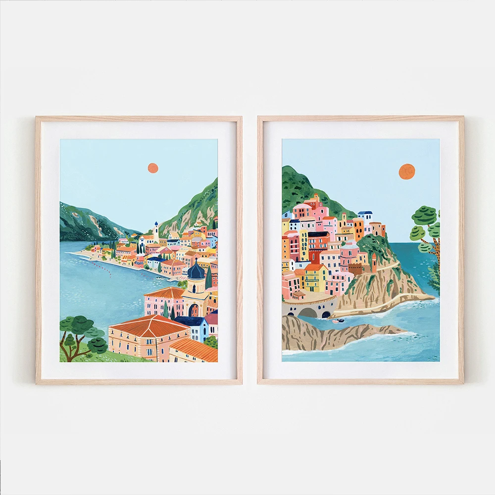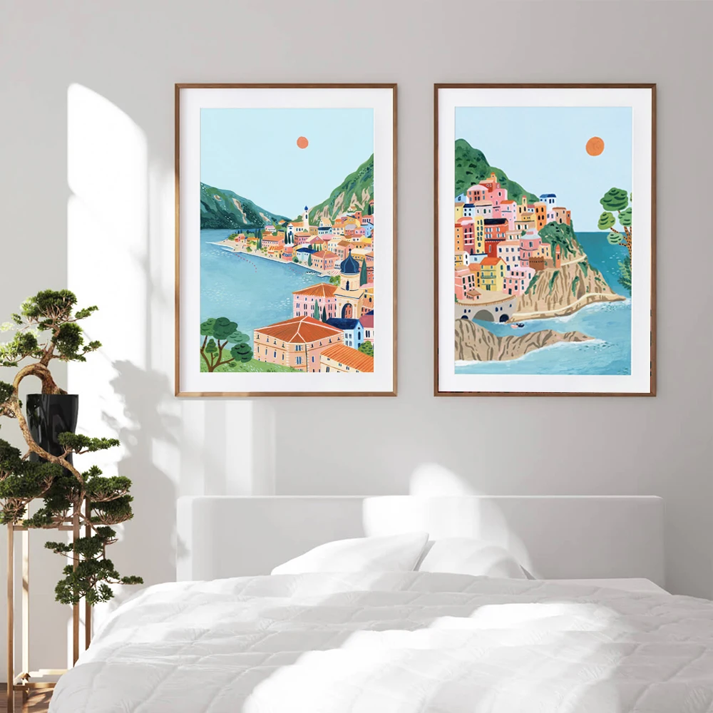 Печать на греческом Санторини, постер на берегу Амальфи, картина Po...