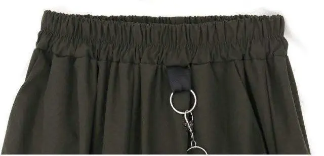 Для женщин грузовой Пряжка для брюк лента карман брюки для девочек с эластичной резинкой на талии Высокая Уличная Брюки в стиле Харадзюку в стиле панк на цепочке женские брюки
