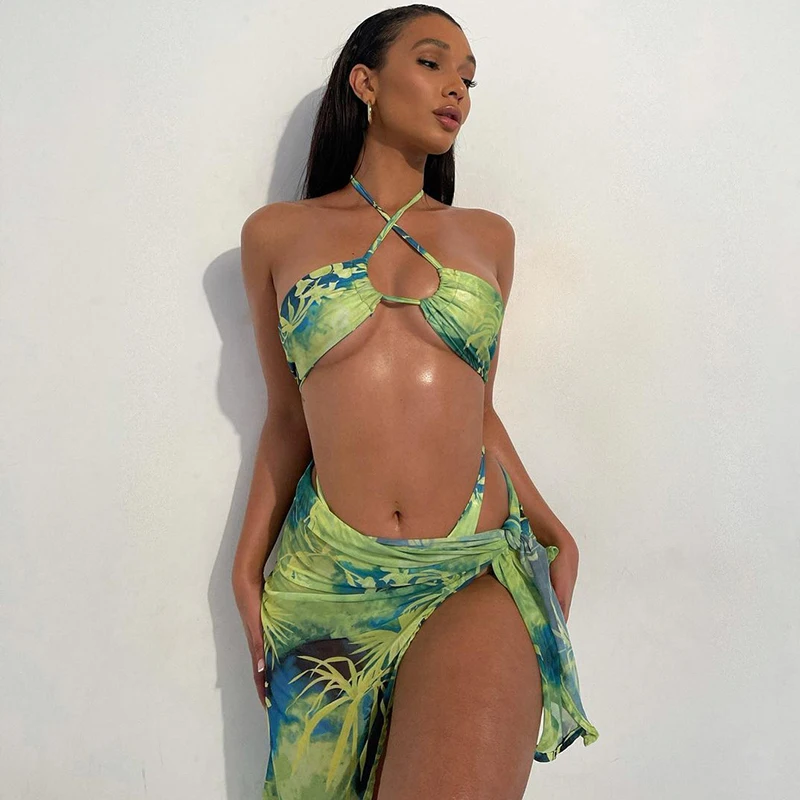 Bomblook пляжный отдых отпуск Для женщин на лето и весну 2021 Холтер бикини на шнуровке Юбка из сетчатой ткани комплект Vetement Femme пикантные Вечерние наряды