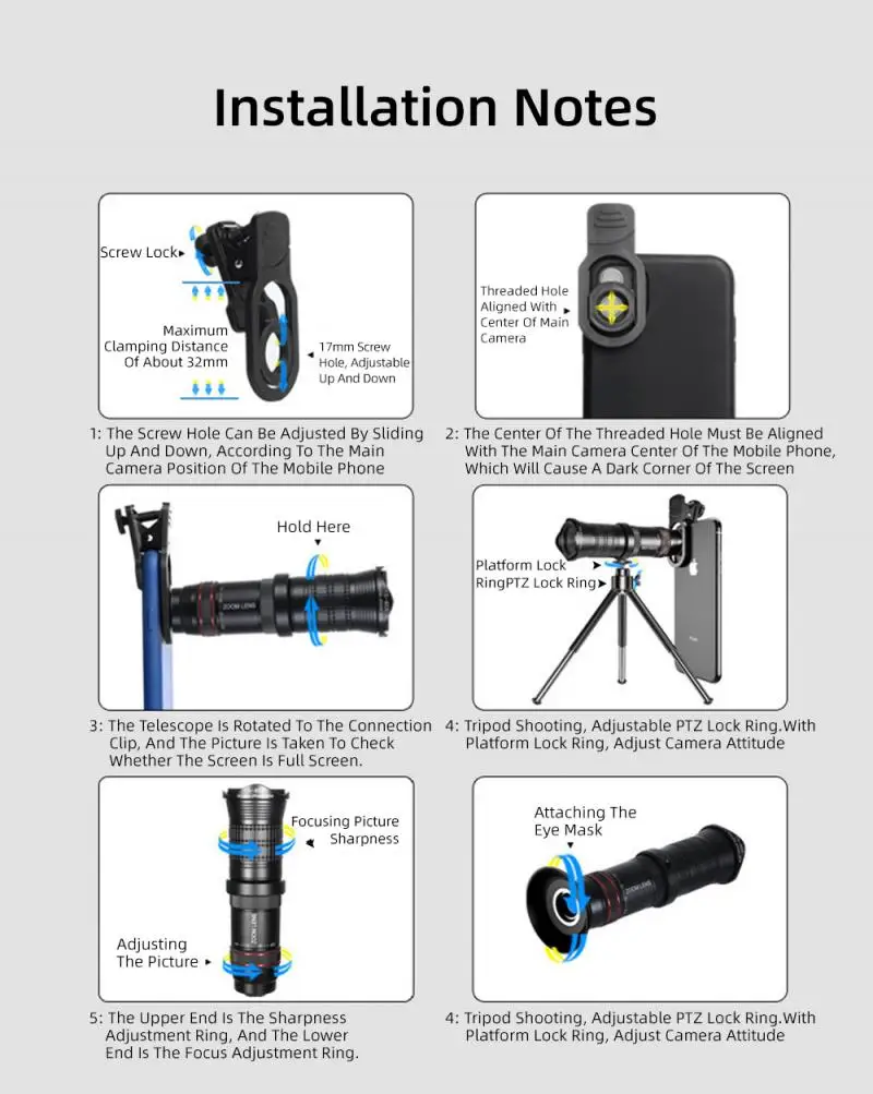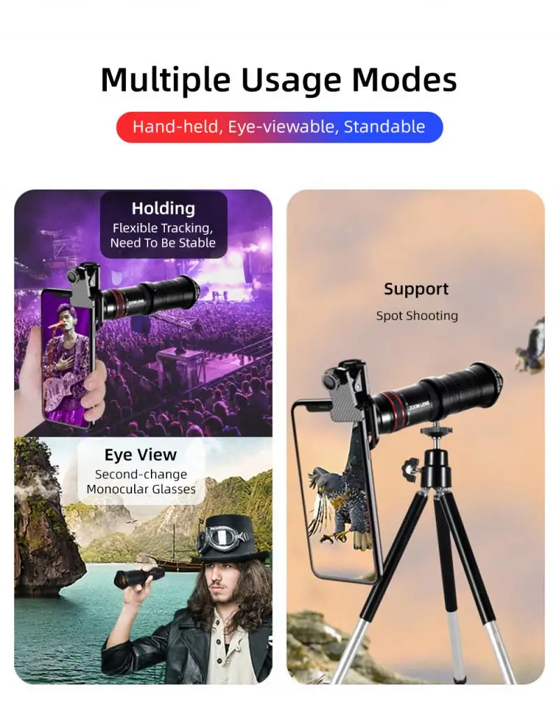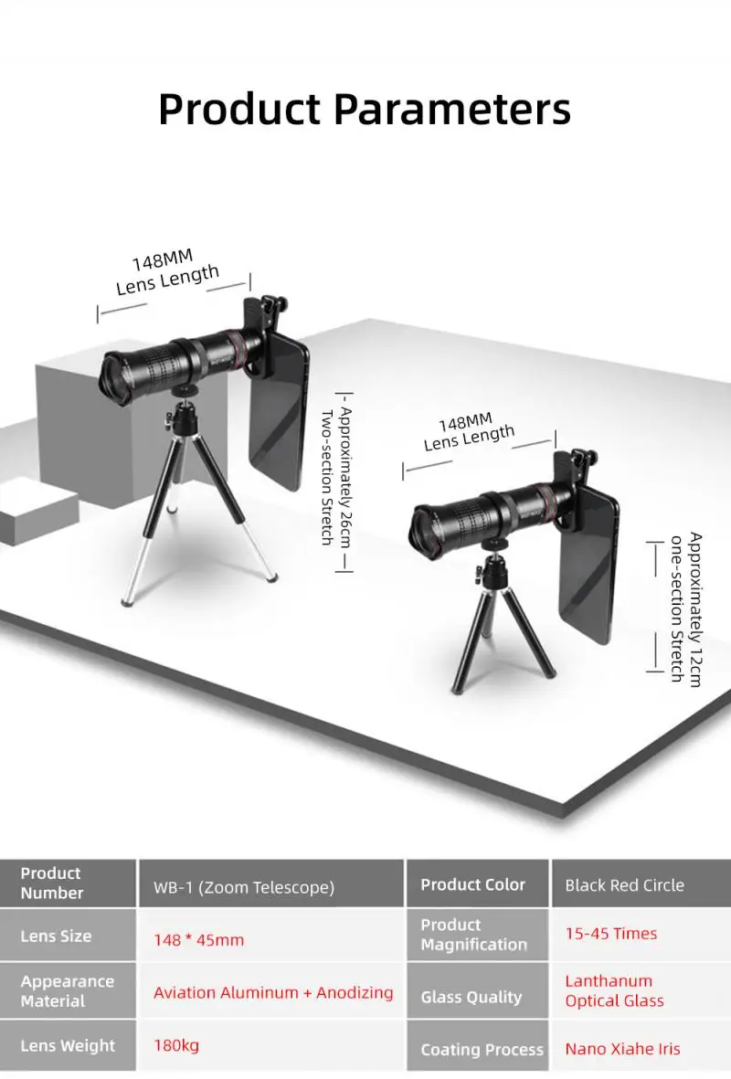 Монокулярный телескоп для телефона HD 15X-45X, телескоп с увеличением Starscope, походный объектив с зажимом, штатив с большим расстоянием для объектива мобильного телефона