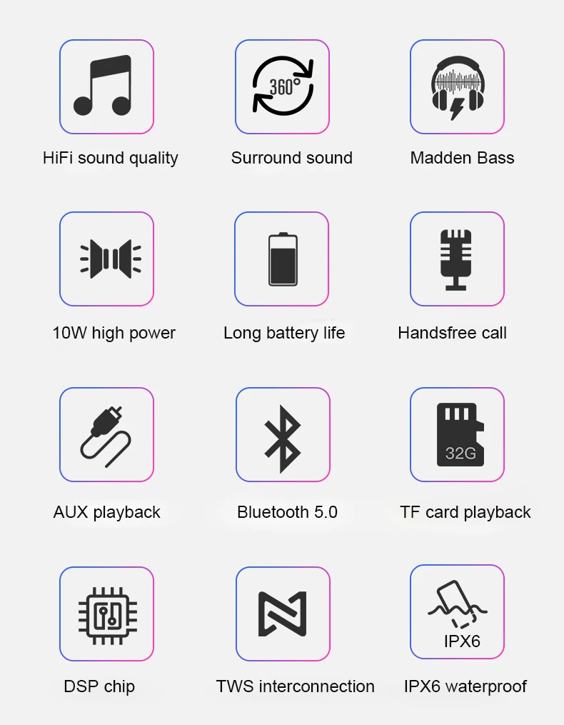 Портативный беспроводной динамик TG271, s BT5.0 басовая колонка, водонепроницаемая уличная USB колонка, TF сабвуфер, громкий динамик
