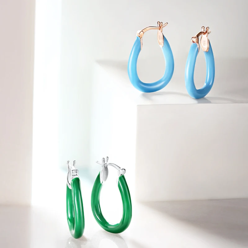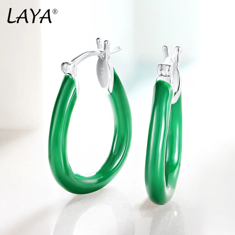 Женские серебряные сережки-подвески Laya, из серебра 925 пробы с эмалью зеленого и бирюзового цвета, модные ювелирные украшения в простом стиле, 2021