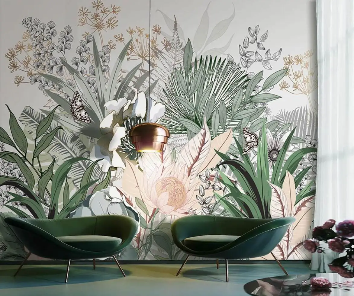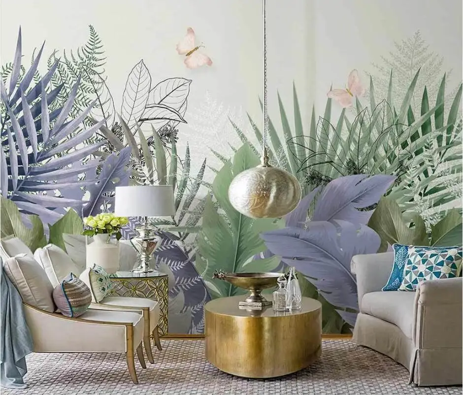 Настенные обои Beibehang в скандинавском стиле, ручная роспись, тропические растения, бабочки, абстрактные листья, фоновые 3d обои
