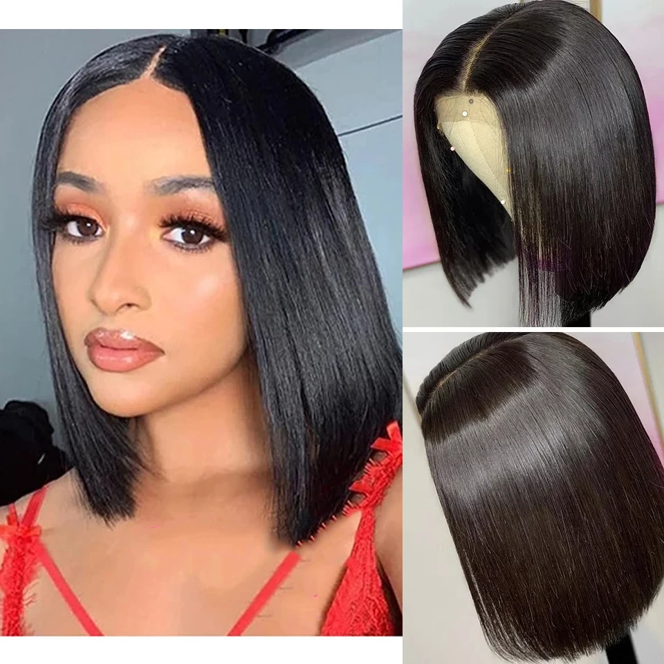 Новый парик из натуральных волос 13x4 на сетке спереди, короткие парики боб, прямые волосы для черных женщин, предварительно выпрямленные Детские волосы, парик на сетке без клея, Remy