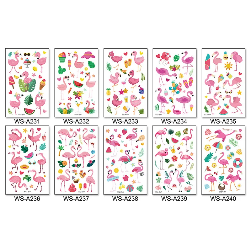 10 видов татуировок в виде фламинго, одноразовые временные Летние Животные, фламинго, цветок, красивое тело, руки, лицо, макияж, водостойкая наклейка