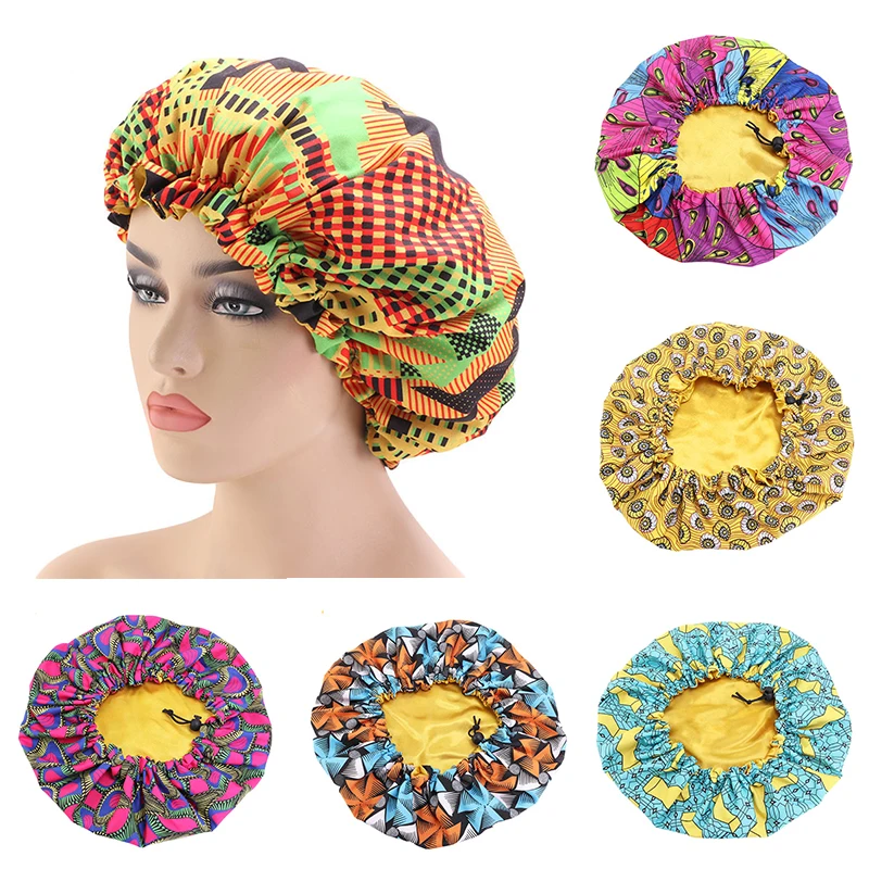 Очень большая шапочка для сна с принтом в африканском стиле, атласная подкладка, шапка для сна, тюрбан