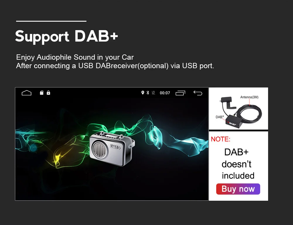 SupportOBD2 DVR DAB+ TMPS rear view camera