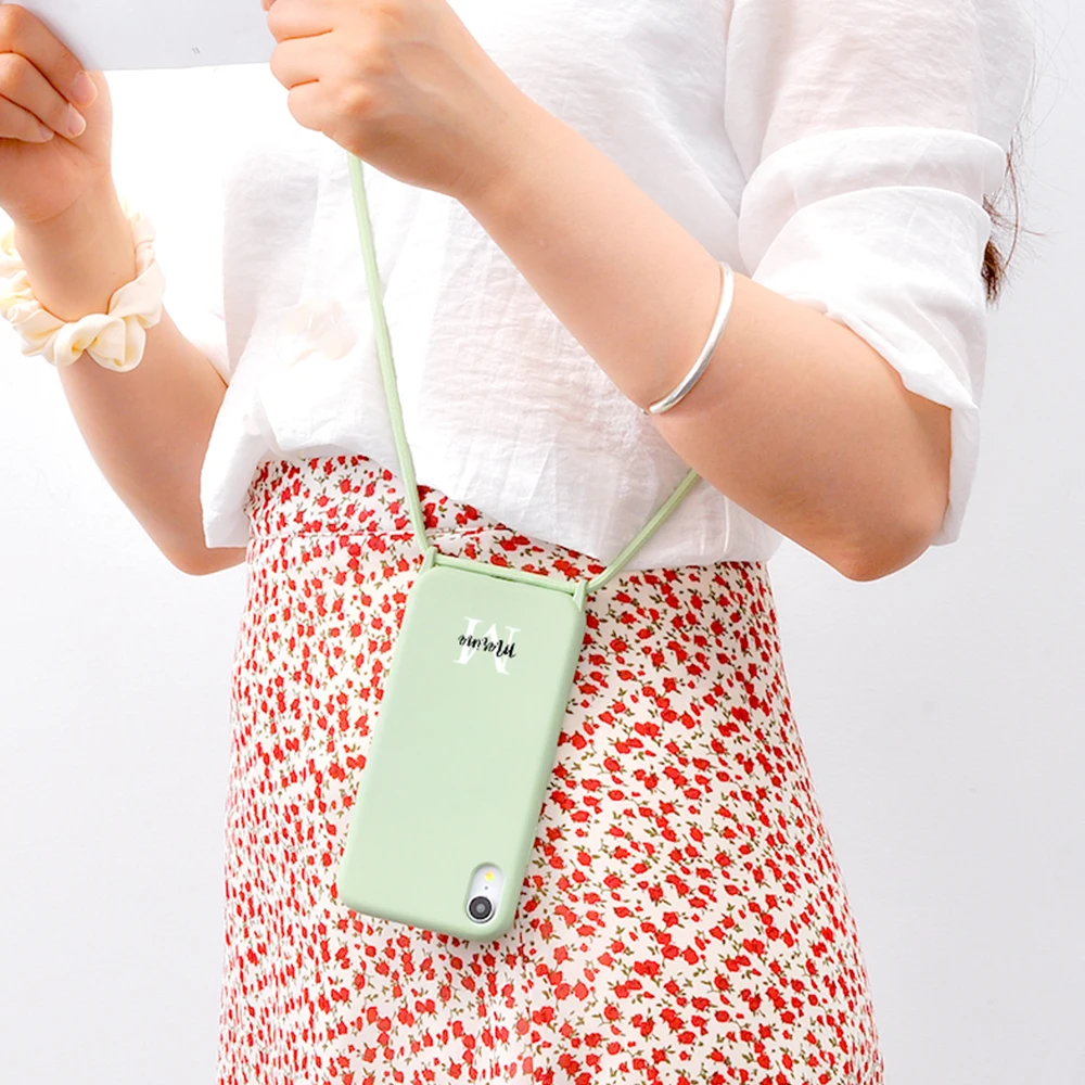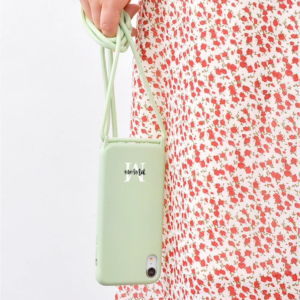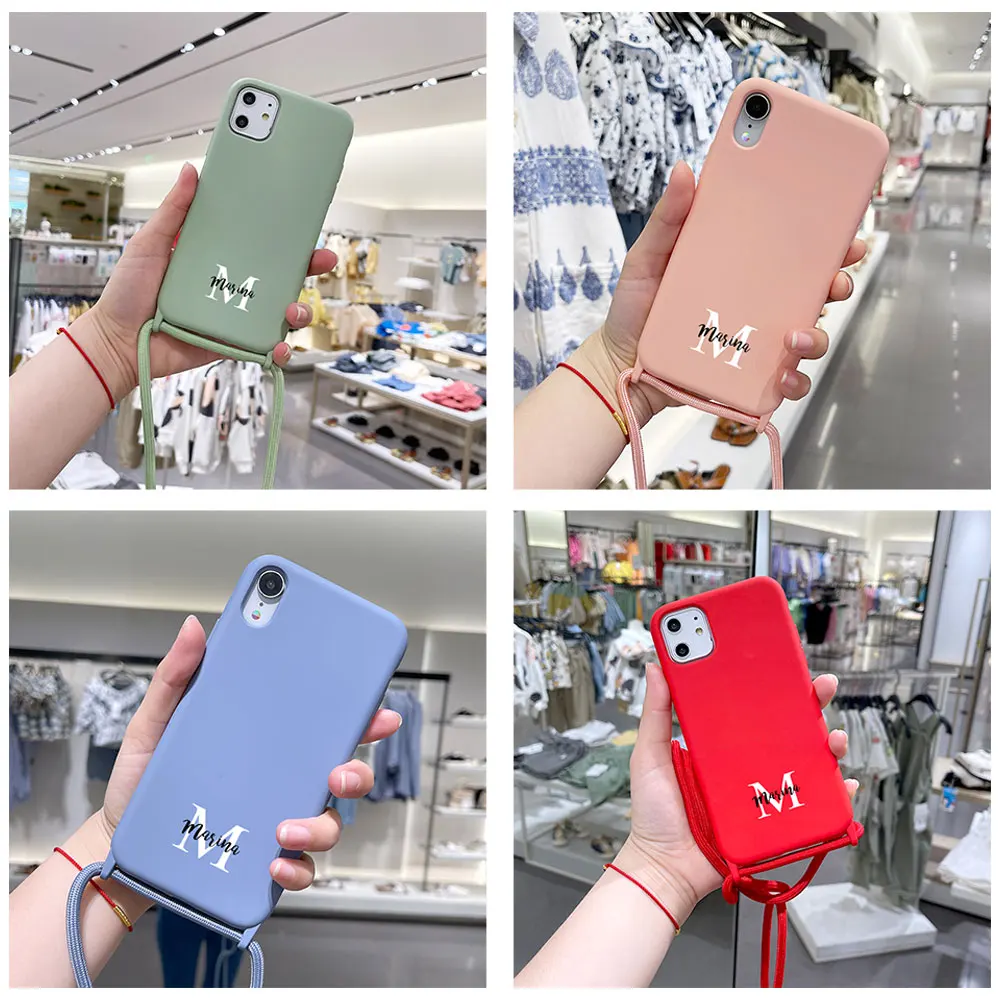 Чехол для телефона на заказ для iPhone 11 12 Pro 7 8 Plus X XR XS Max с веревкой, мягкий портативный жидкий силиконовый чехол, подарок для мальчиков и девочек
