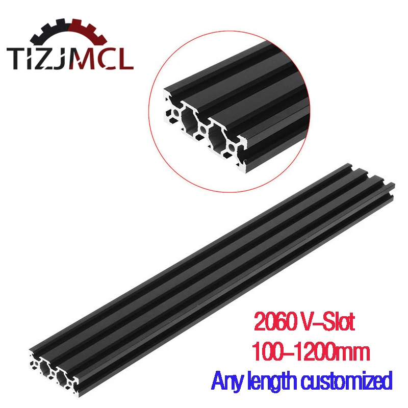 Алюминиевый профиль 2060 V-Slot, черный, европейский стандарт, анодированный линейный рельс длиной 100-1200 мм для ЧПУ 3D принтера, гравировального станка