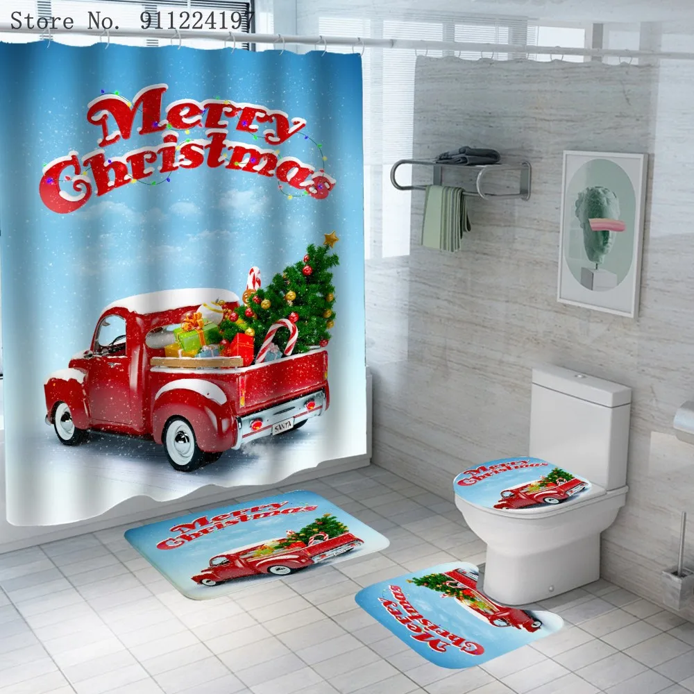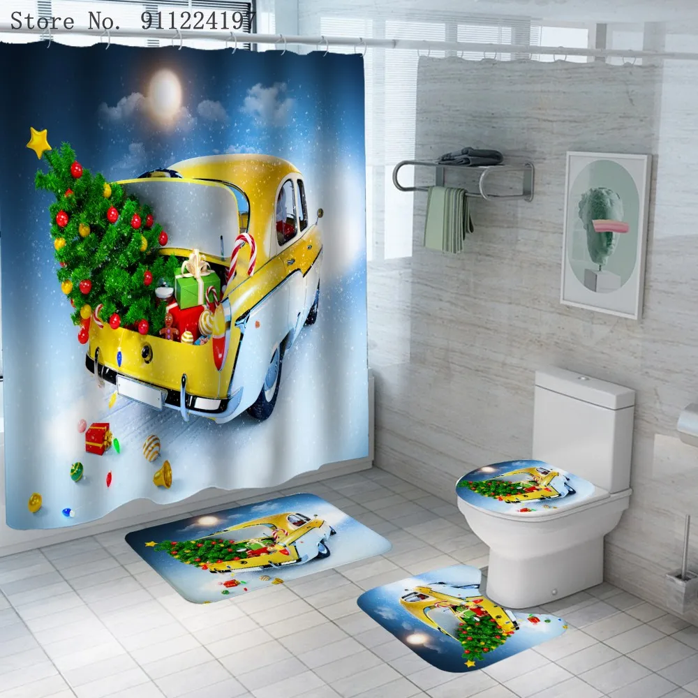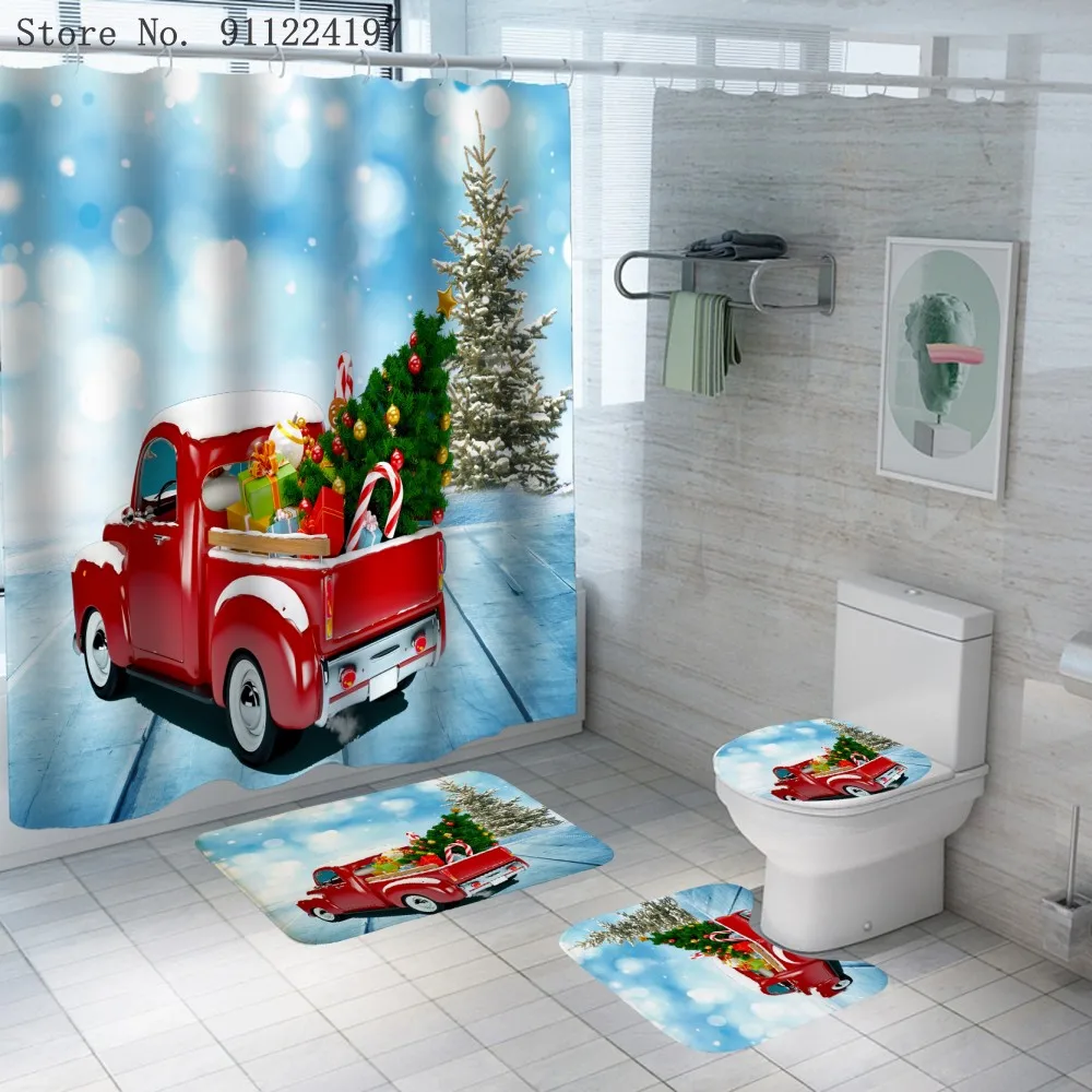 Зимняя занавеска для душа в виде рождественской елки, чехол для унитаза, нескользящий коврик для ванной, рождественский подарок, занавеска для унитаза, аксессуар для ванной