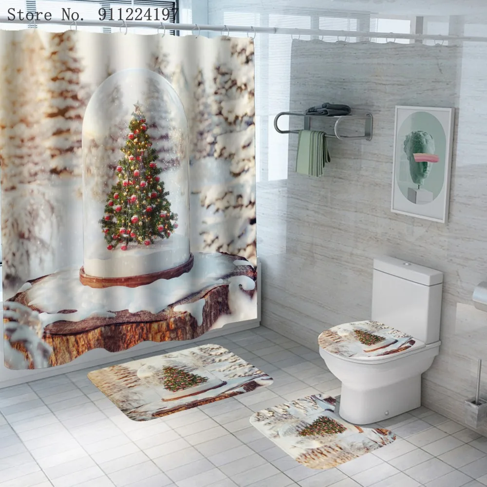 Зимняя Рождественская елка, занавеска для душа, крышка унитаза, нескользящий Коврик для ванны, рождественский подарок, занавеска для ванны, сиденье для унитаза, аксессуары для ванной