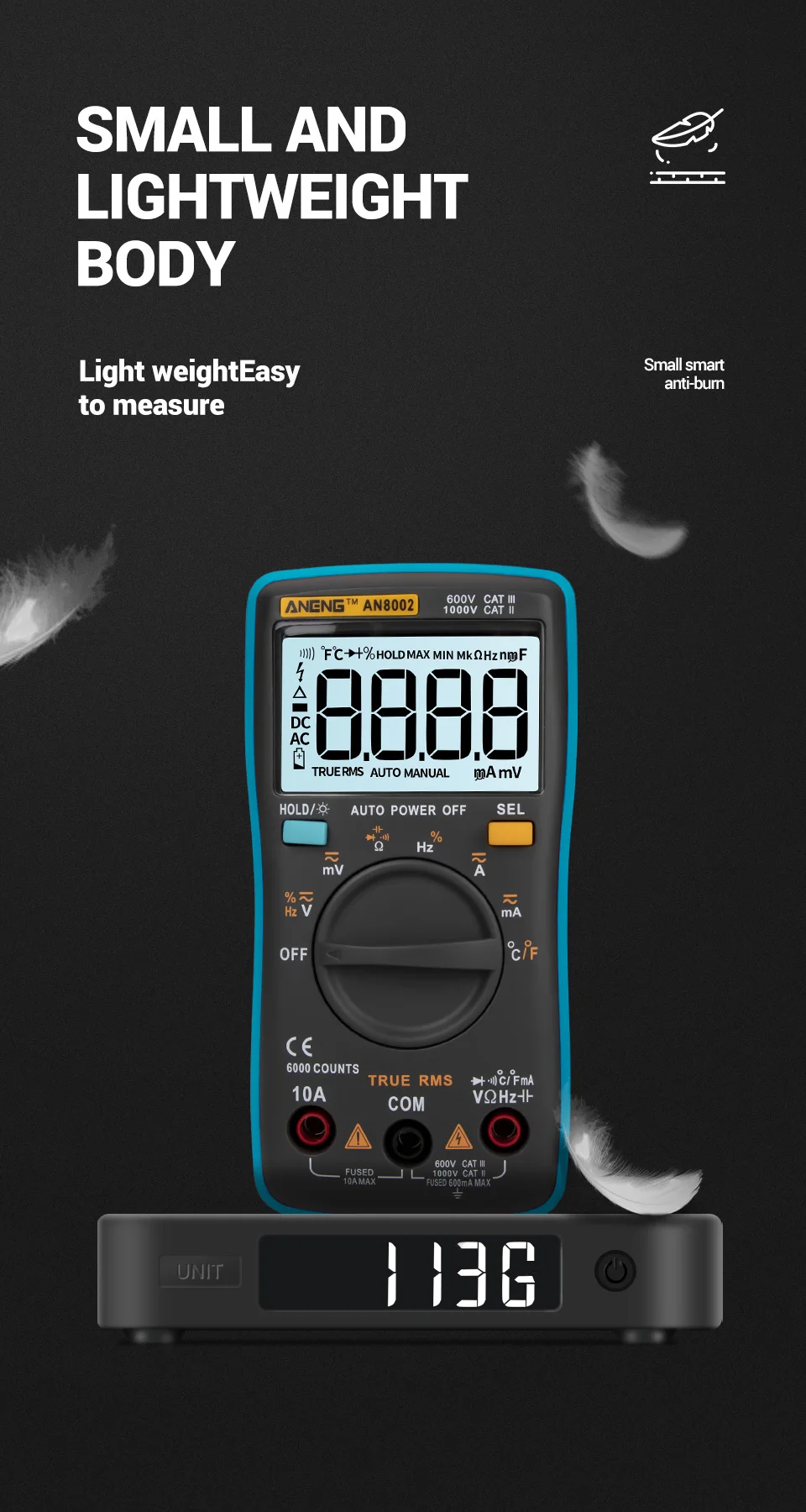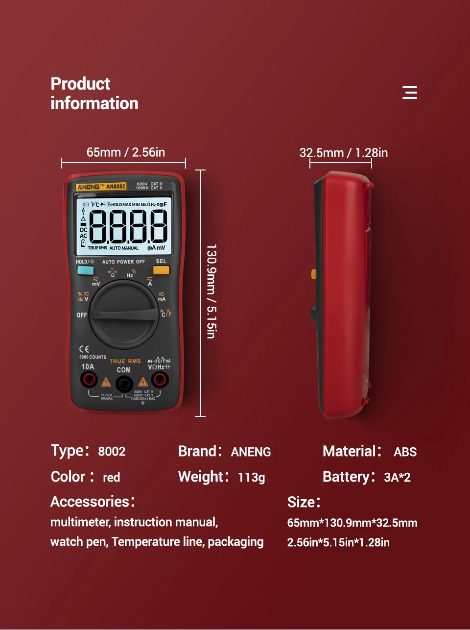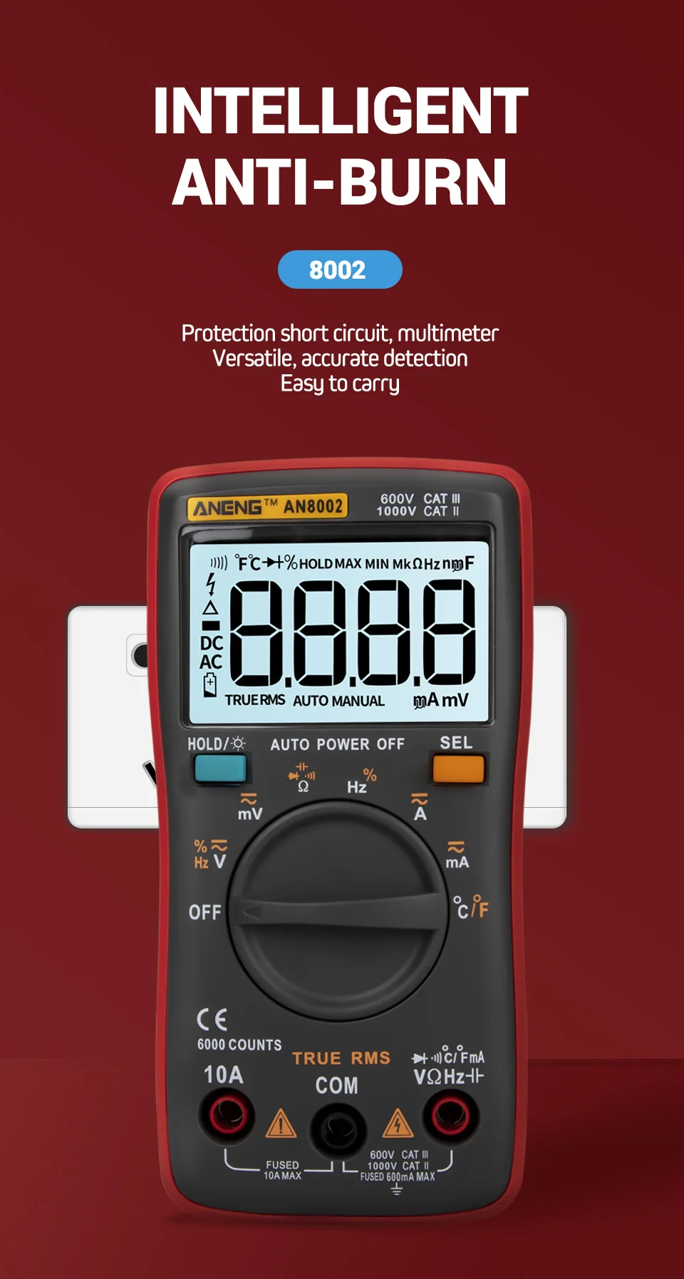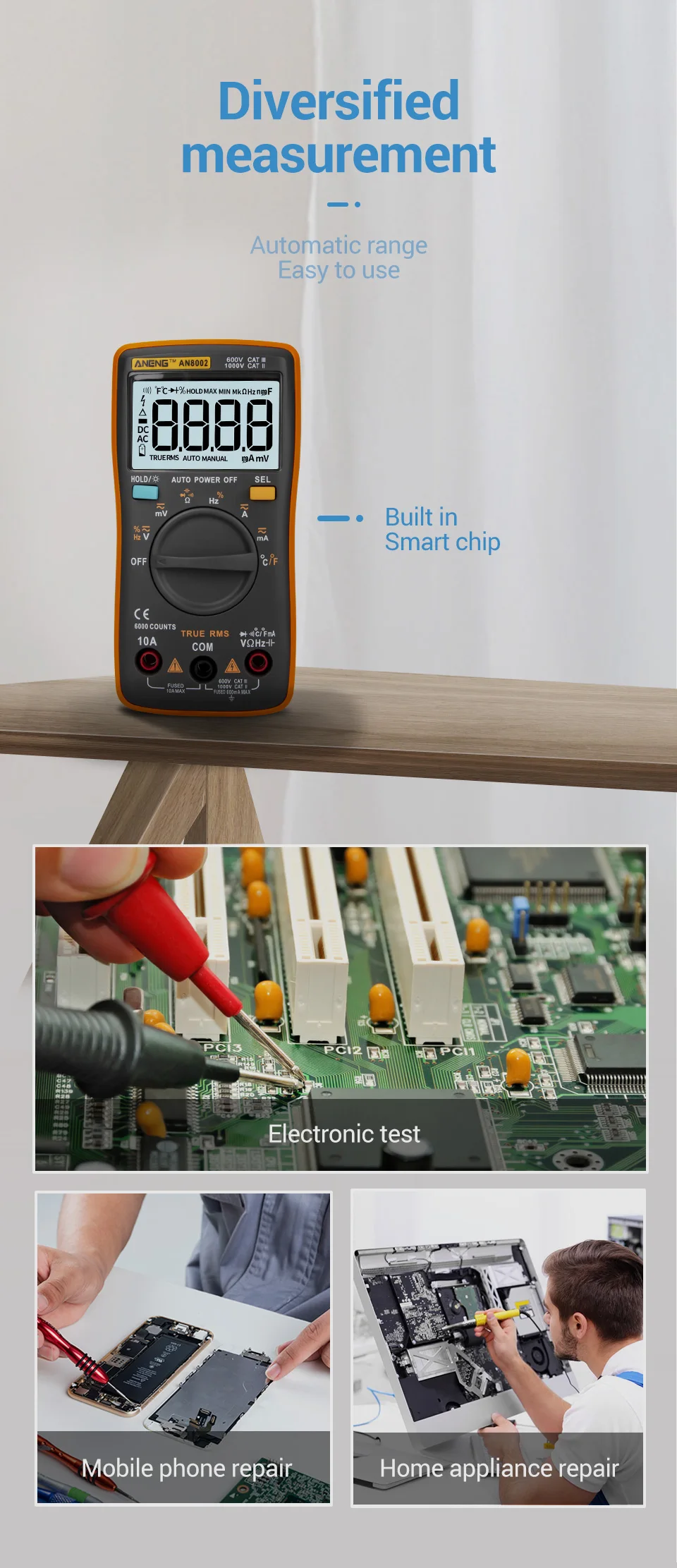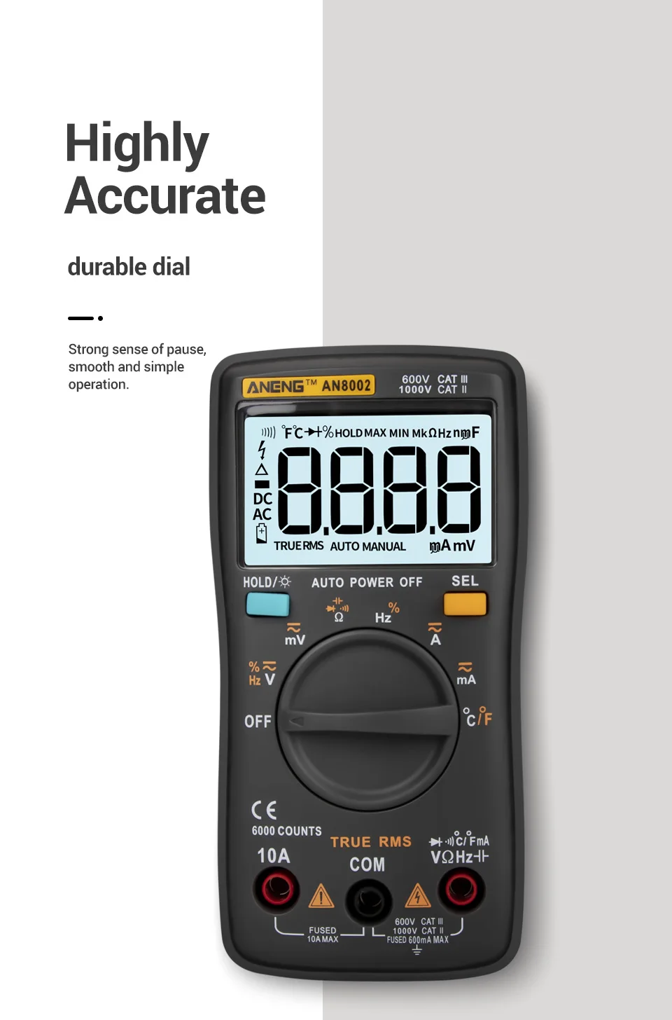 Цифровой мультиметр ANENG AN8002 с автоматическим выбором диапазона, высокоточный тестер напряжения переменногопостоянного тока, 6000 отсчетов, конденсатор, Универсальный измеритель
