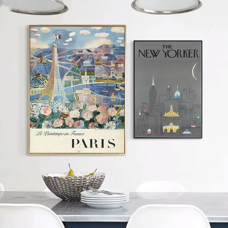 Винтажная настенная Картина на холсте Париж Нью-Йорк, обложка журнала, плакаты и принты для гостиной, домашнее украшение, фреска