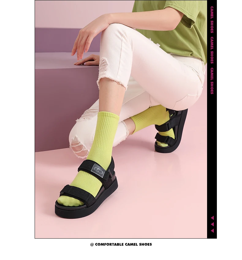 CAMELженские летние пляжные сандалии на танкетке; Коллекция 2021 года; Сетчатые повседневные спортивные женские сандалии с открытым носком на липучке; Новинка