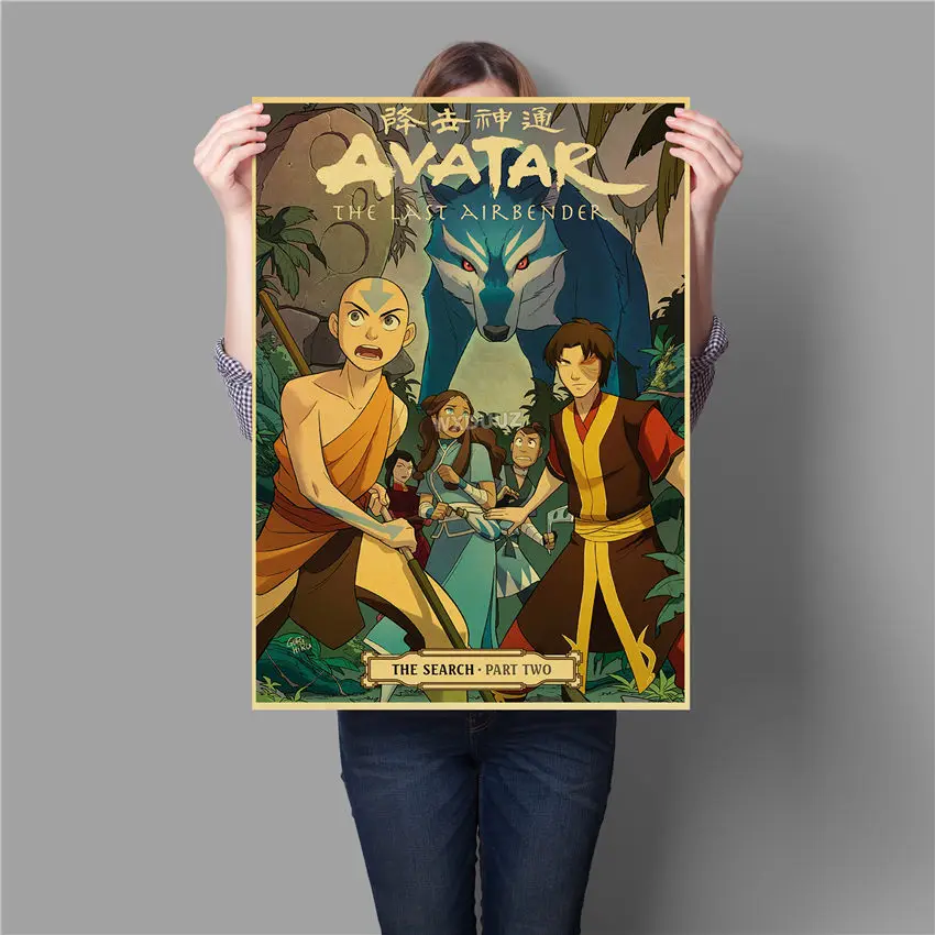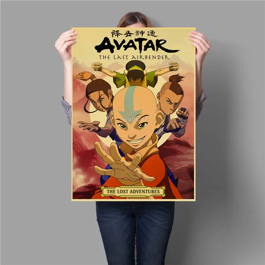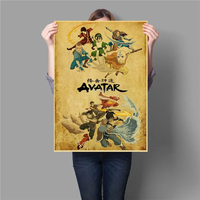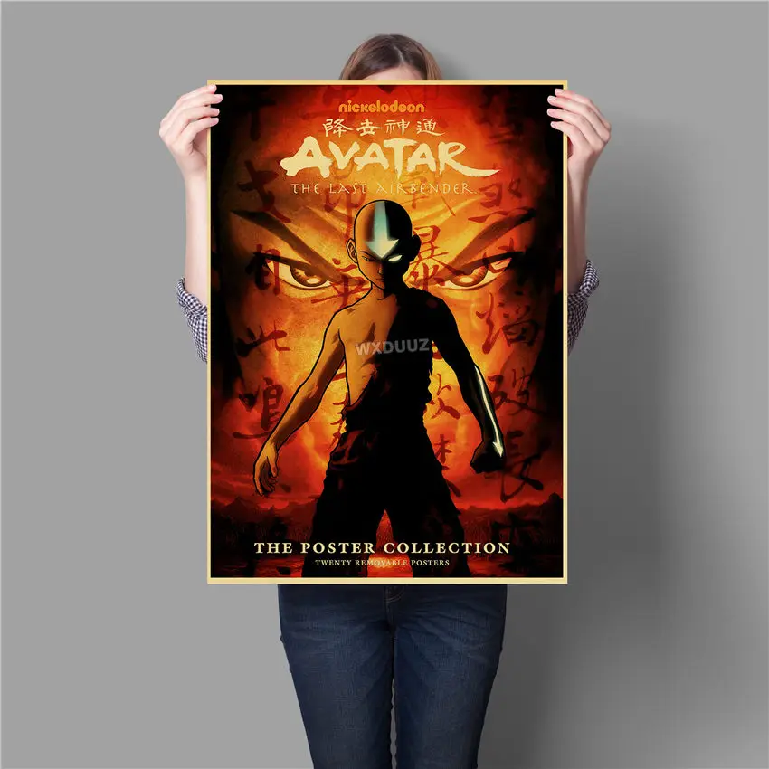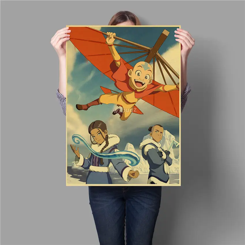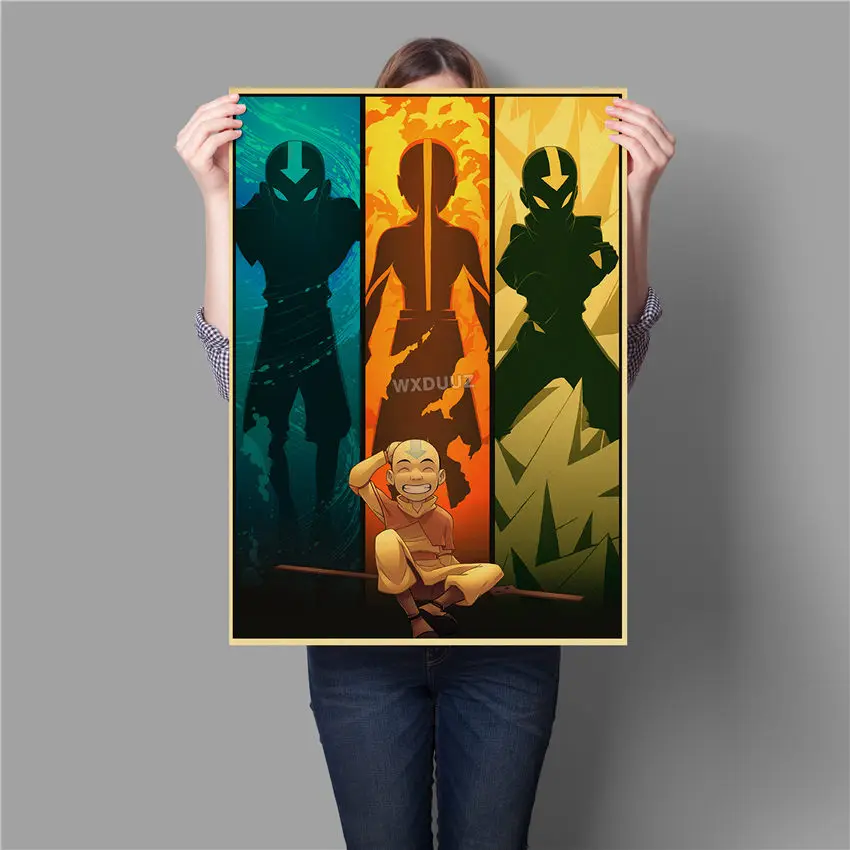 Аниме постер The Last Airbender Aang Fight, винтажные Аниме фигурки, постеры, домашний декор, настенное искусство без рамки, холщовая живопись