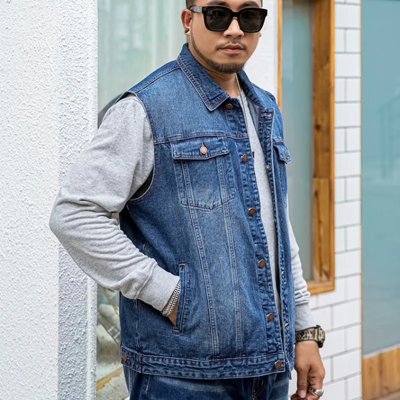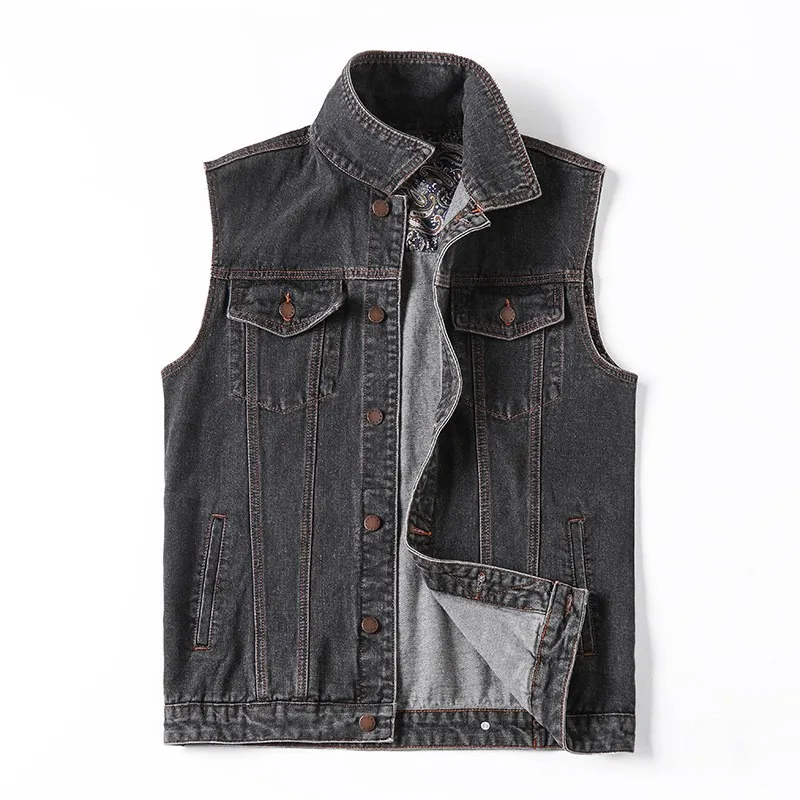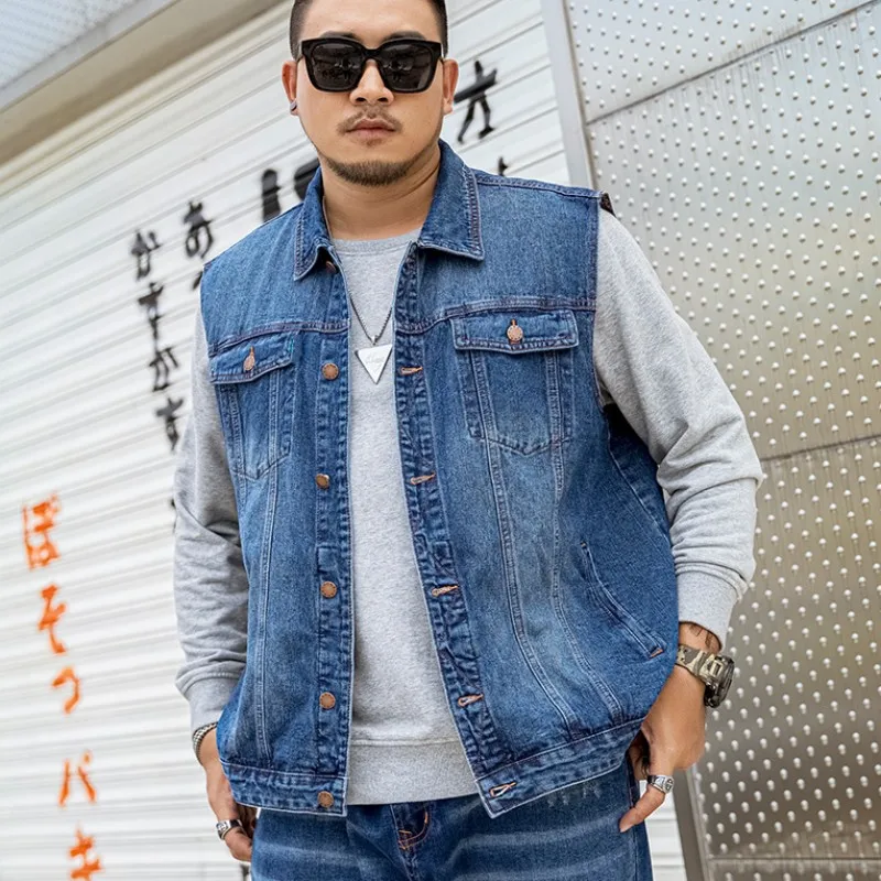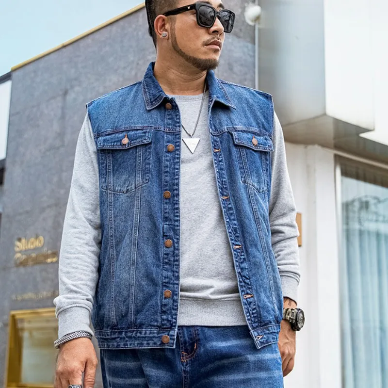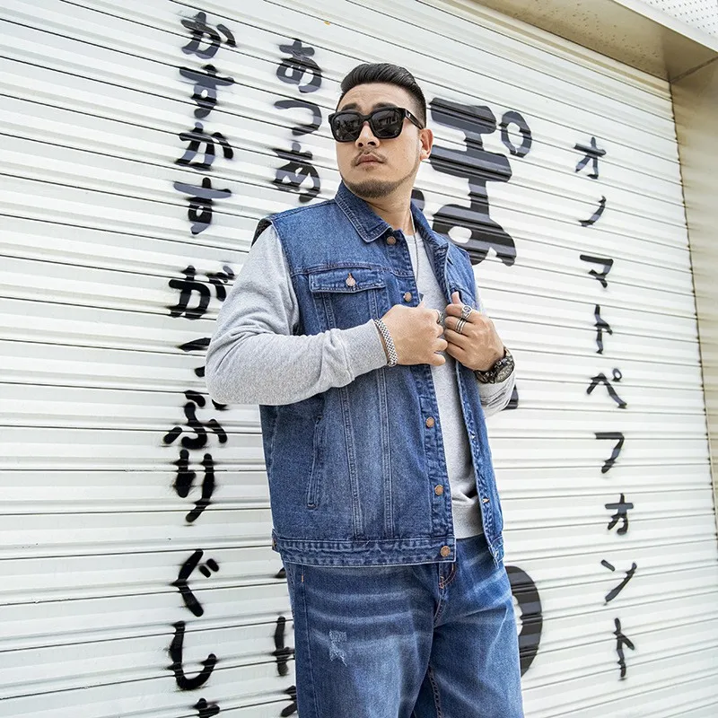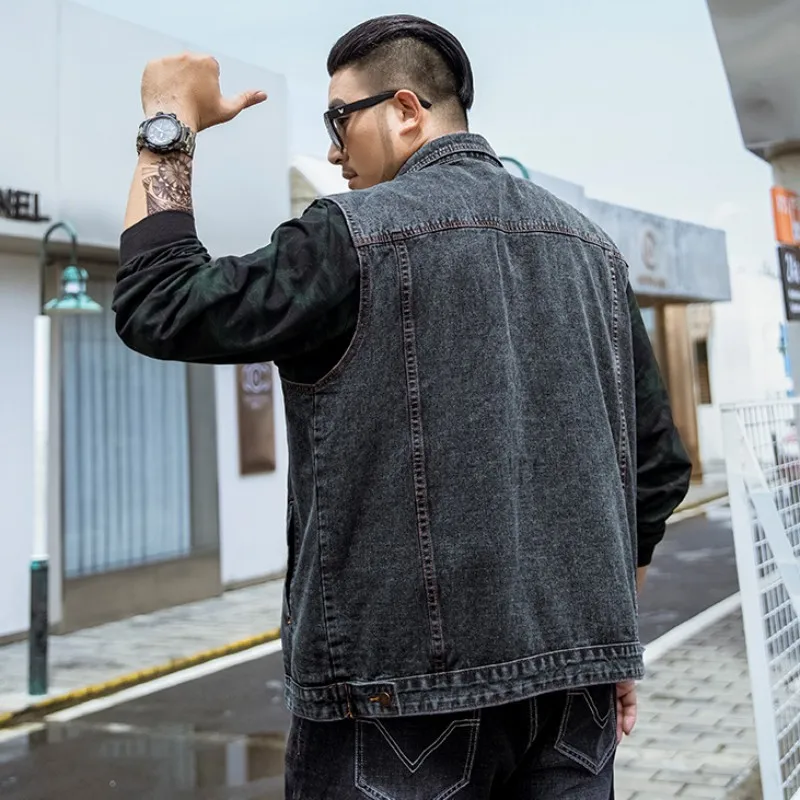 Модный мужской джинсовый жилет, бриджи 5XL 6XL 7XL, уличная одежда, мужской свободный крой, карго, повседневный жилет на пуговицах без рукавов, куртки