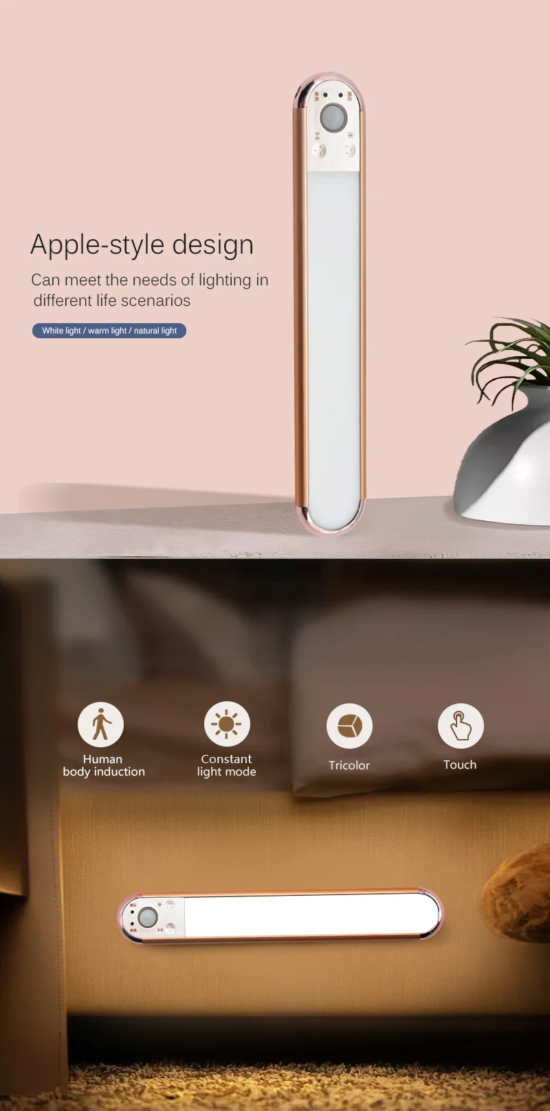 Светодиодная лампа под шкаф для кухни, перезаряжаемый ночсветильник с датчиком движения, с выключателем, Автоматическая Инфракрасная Ночная лампа для коридора, 3 цвета