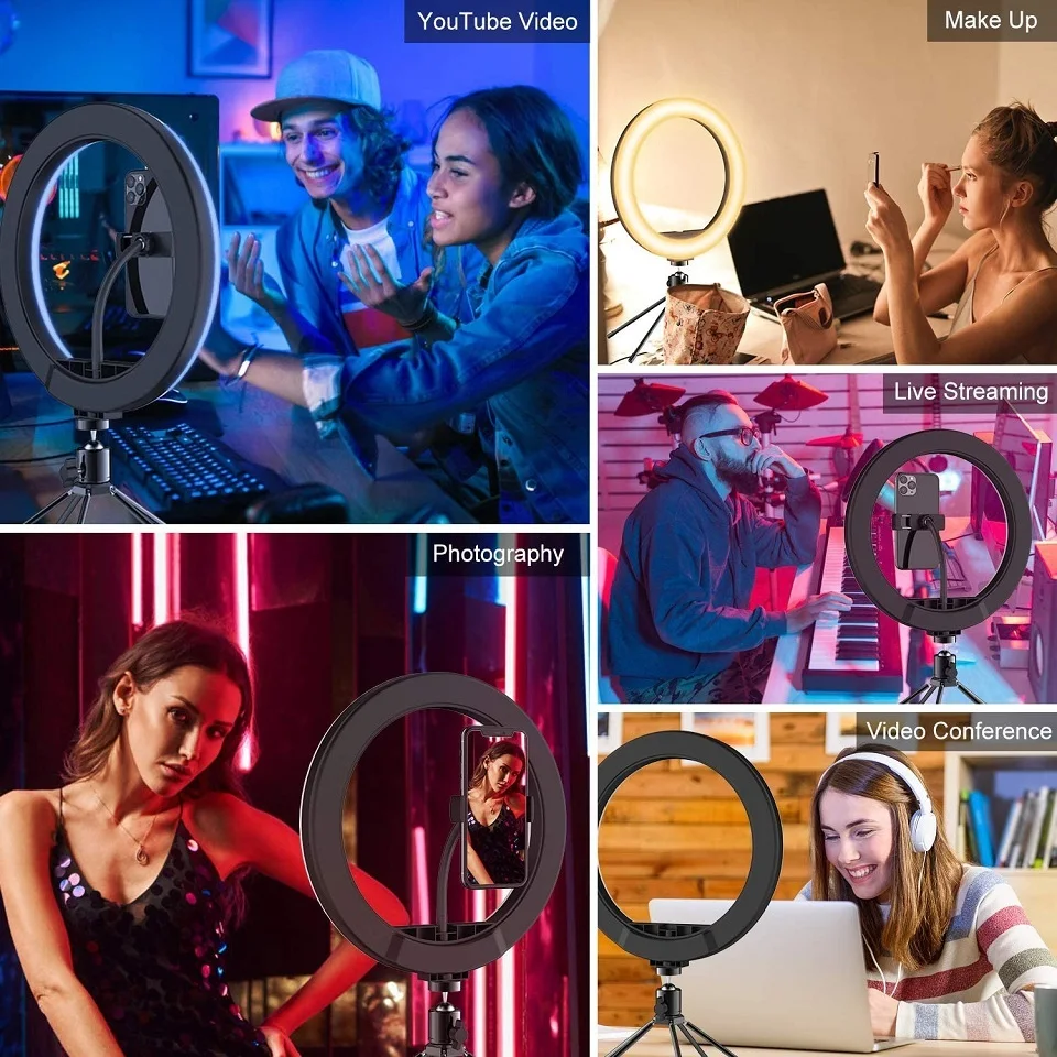 Кольцевой светодиодный светильник RGB, 10 дюймов, 33 цвета, с регулируемой яркостью, с подставкой Штатив для осветительного прибора для макияжа, Youtube, Vlog Live