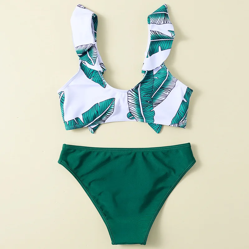Комплект бикини для девочек с принтом листьев, лето 2022, Детские к...