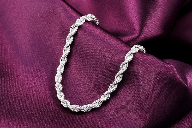 925 серебро 4 мм закрученная цепочка на шею для мужчин и женщин, юв...