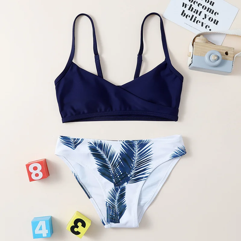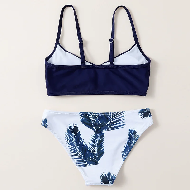 Купальник для девочек-подростков, летний, раздельный, с принтом листьев, для детей 7-14 лет