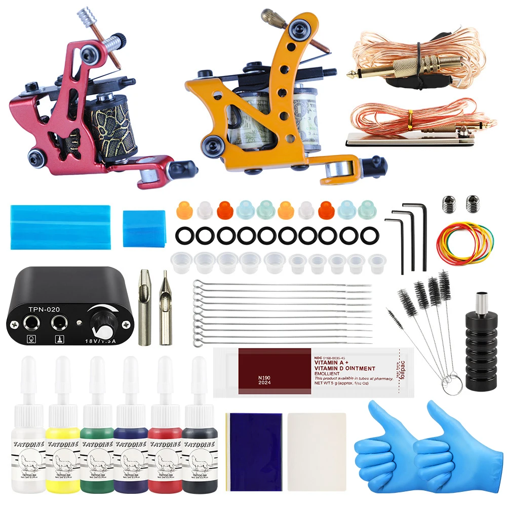 Полный набор тату-машинок TATOOINE, с чернилами и иглами, профессиональный набор аксессуаров для начинающих