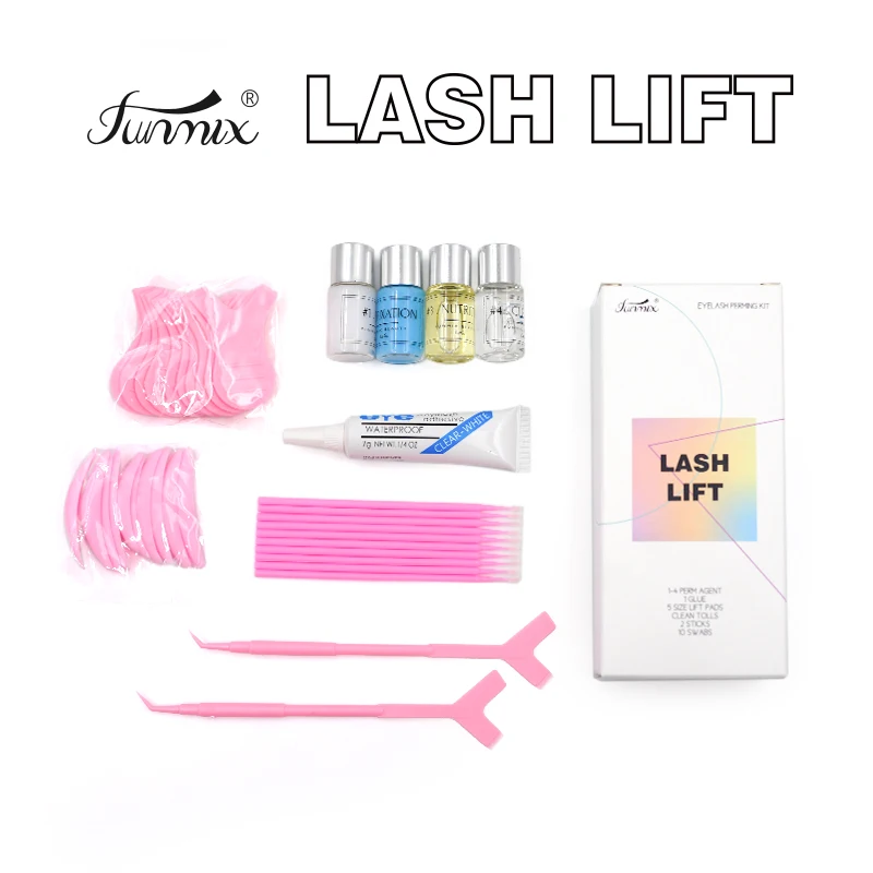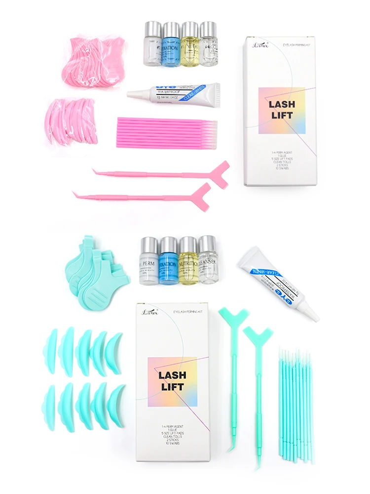 В комплект входят перманентные средства, фиксация, питание, клей для ресниц, чистящее средство и чистящие прокладки.