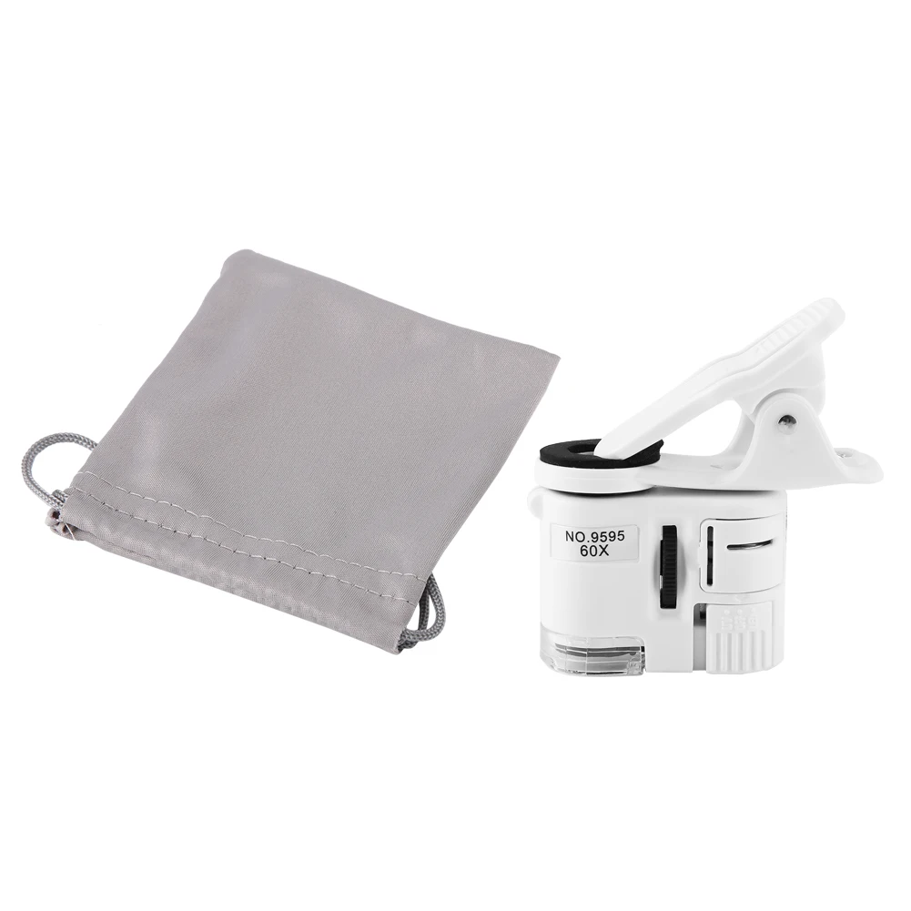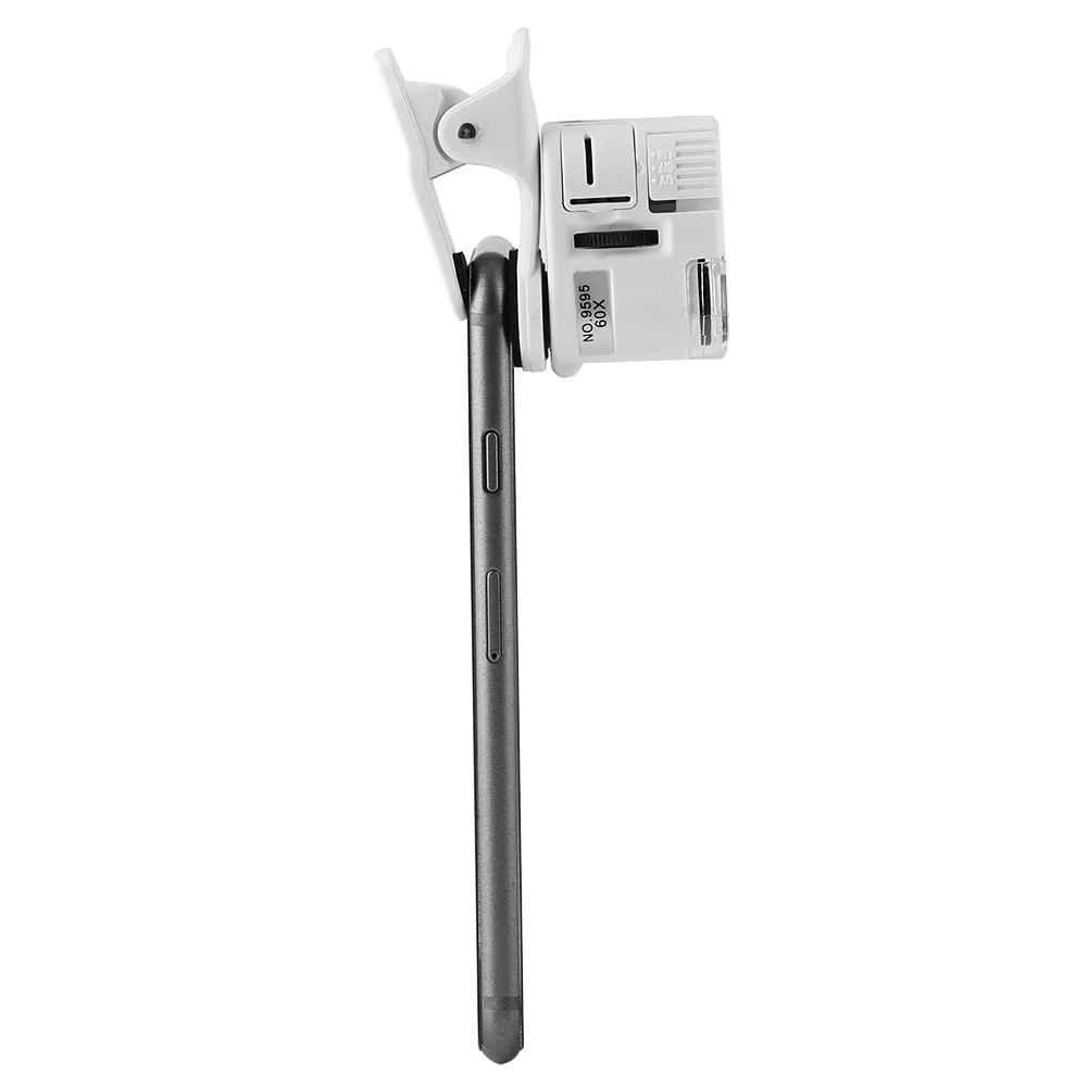 Регулируемая фокусировка Универсальный 9595 Вт 60X Мини Мобильный телефон микроскоп с зажимом светодиодные УФ-лампы увеличительное стекло 60 раз лупа