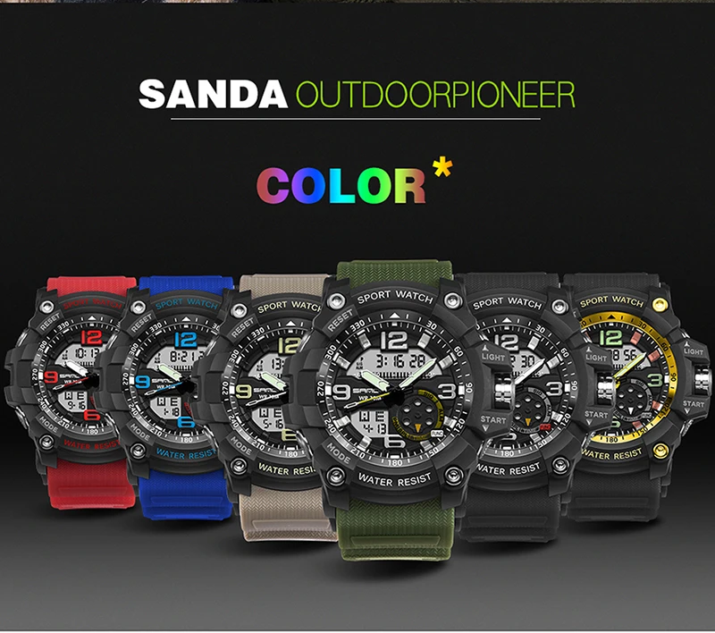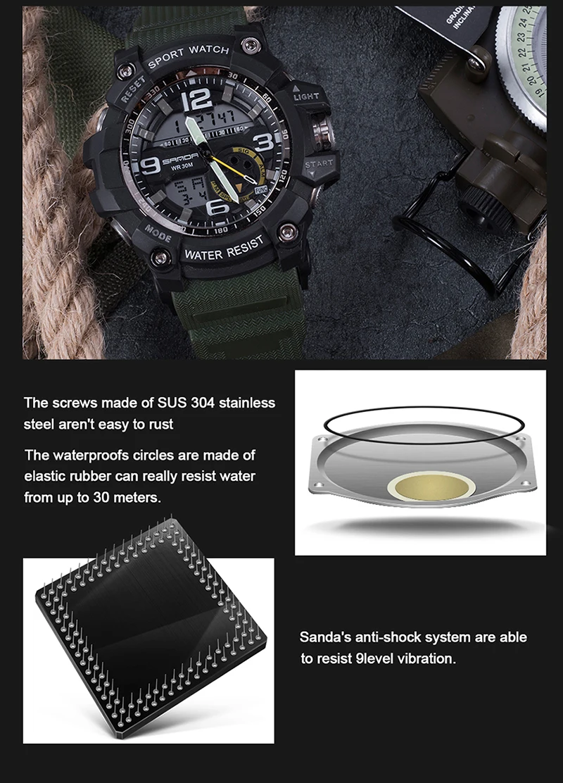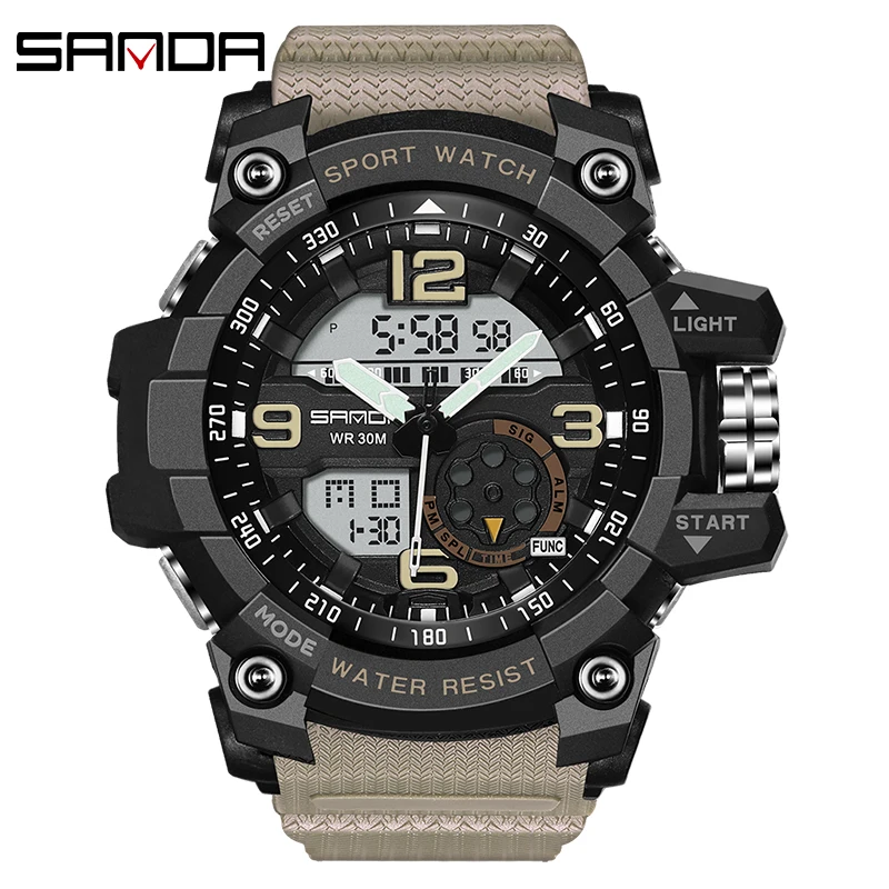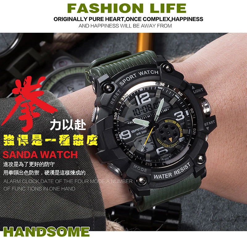 Часы наручные SANDA Мужские кварцевые в стиле милитари, спортивные брендовые Роскошные водонепроницаемые S Shock, 759