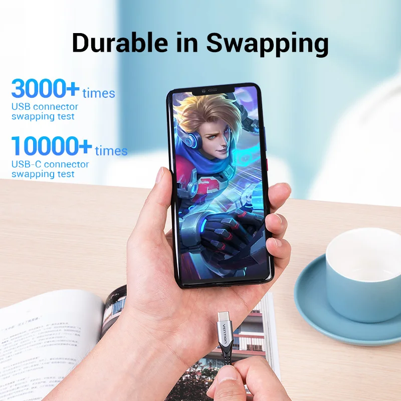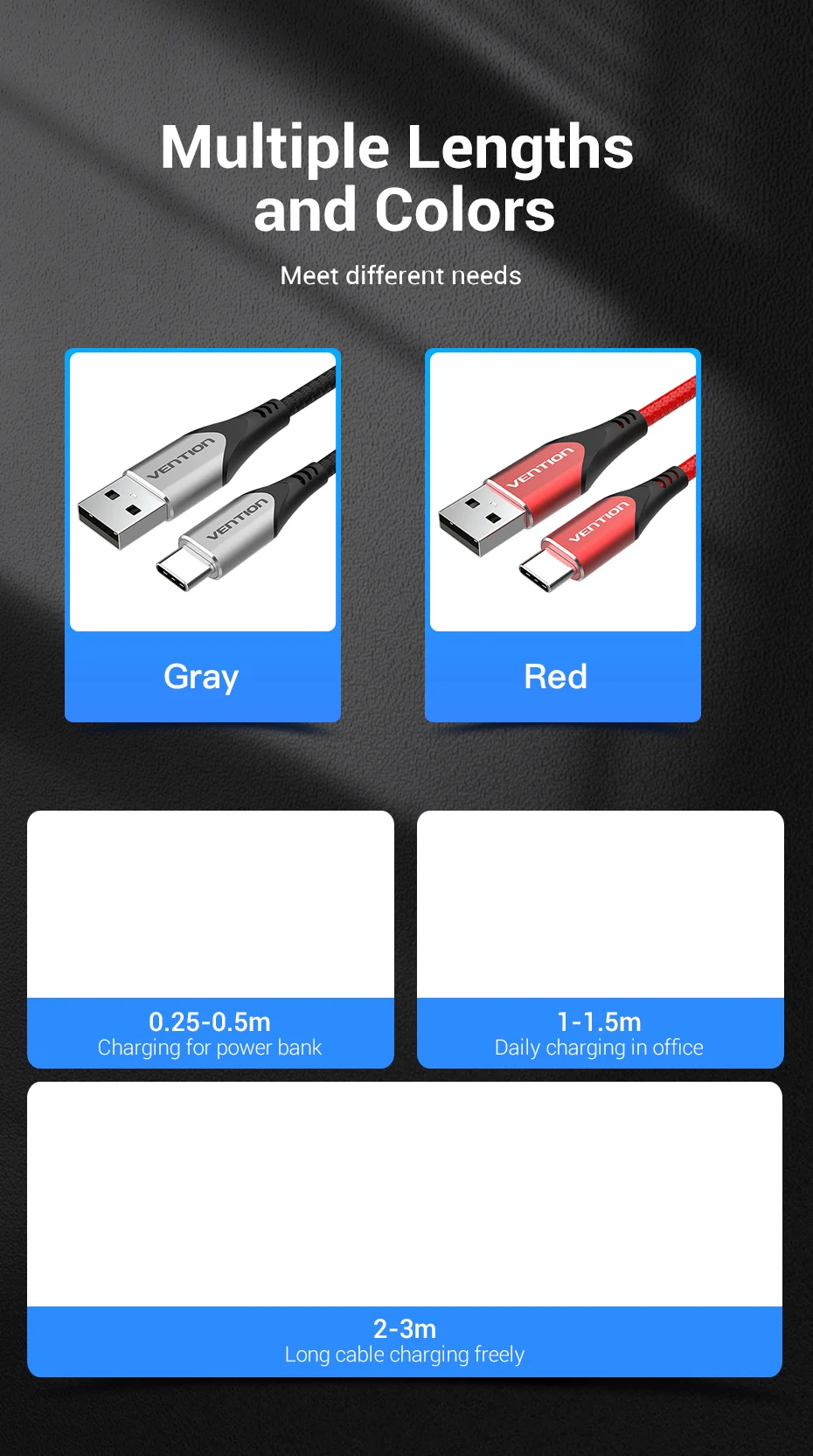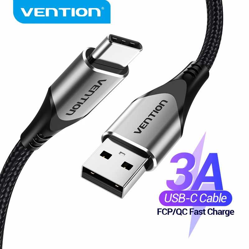 Нейлоновый кабель Vention Type-C, 3 А, для быстрой зарядки мобильный телефон, USB C, шнур для Xiaomi Redmi note 8, Samsung S20, зарядное устройство, кабель USB Type-C