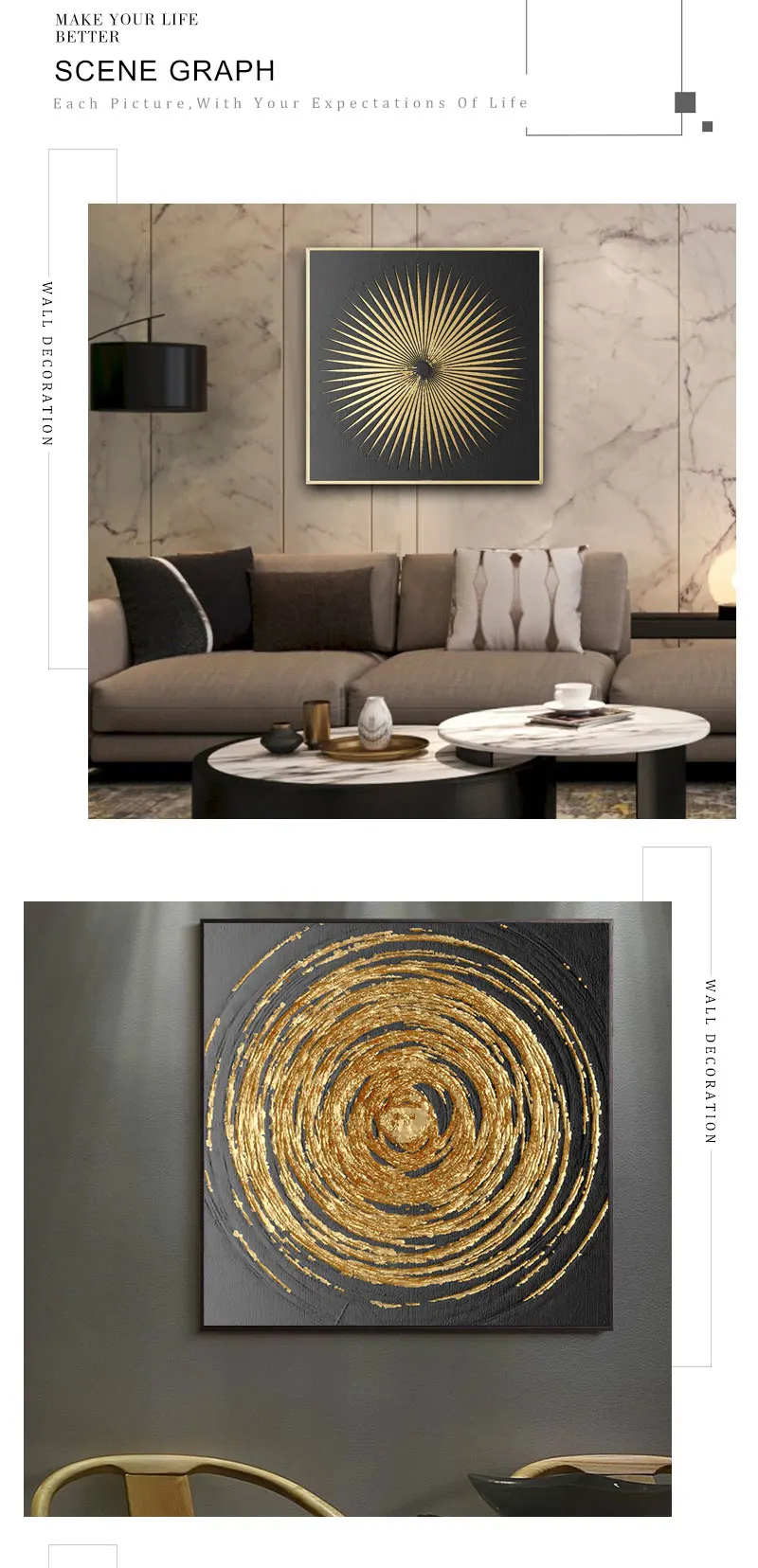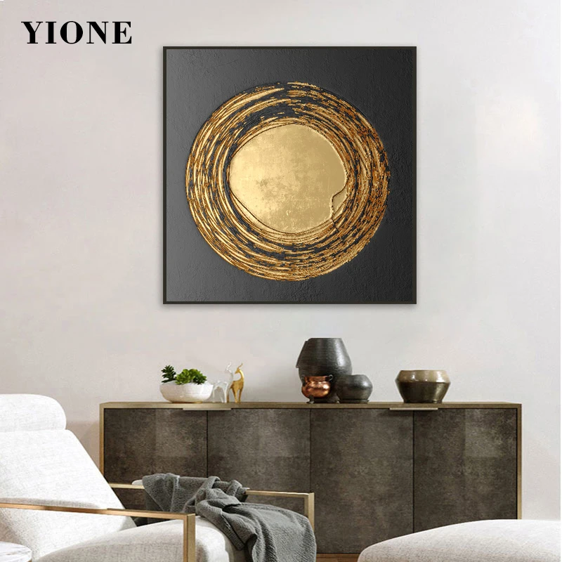 Абстрактный черного и золотого цвета из плотной ткани Картины современный роскошный круглый линии трещины Луна зерно текстуры картинками настенные художественные плакаты и принты