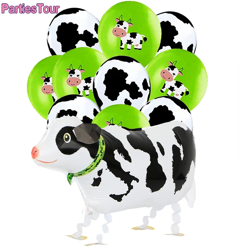 Воздушные шары из фольги, 11 шт., воздушные шары с коровой, корова, воздушные шары с рисунком, ходячая лошадь, корова, животное, корова, ферма, тематическая вечеринка на день рождения, декор для детского душа